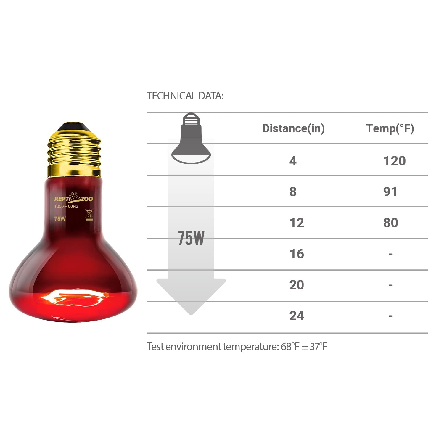 75W Reptile Heat Lamp Bulb 2PCS Infrared Heat Emitter Red Heat Lamp for Repti...