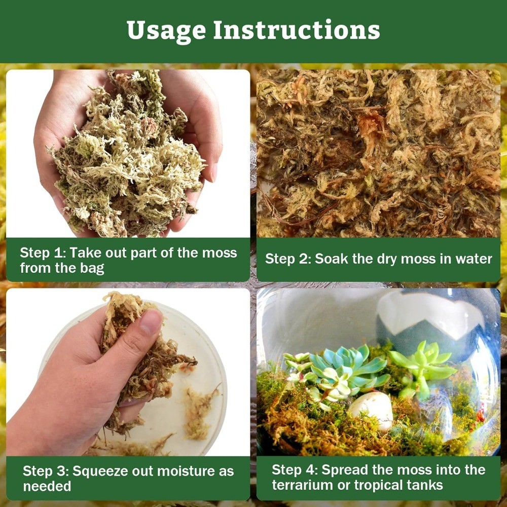 Natural Sphagnum Moss Reptile Bedding 5.3oz 6QT Dried Forest Moss for Terrarium