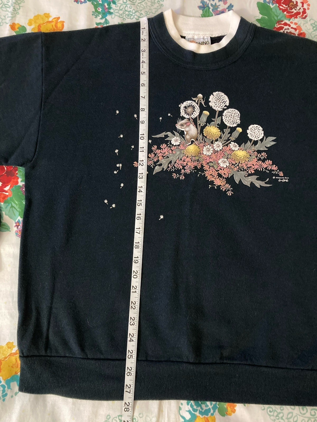 как выглядит Vintage Morning Sun Black Sweatshirt Womens XL Field Mouse USA 90s Double Sided фото