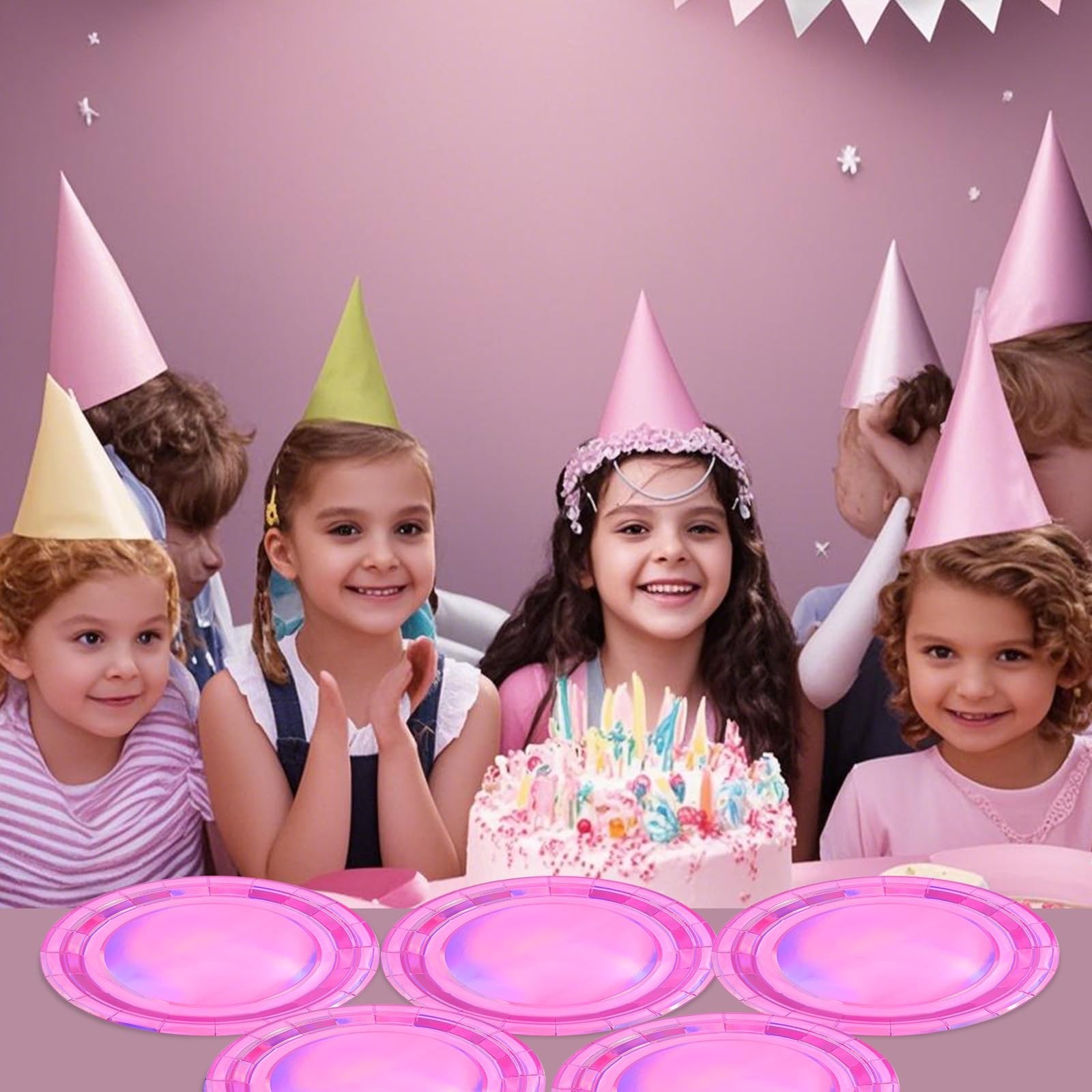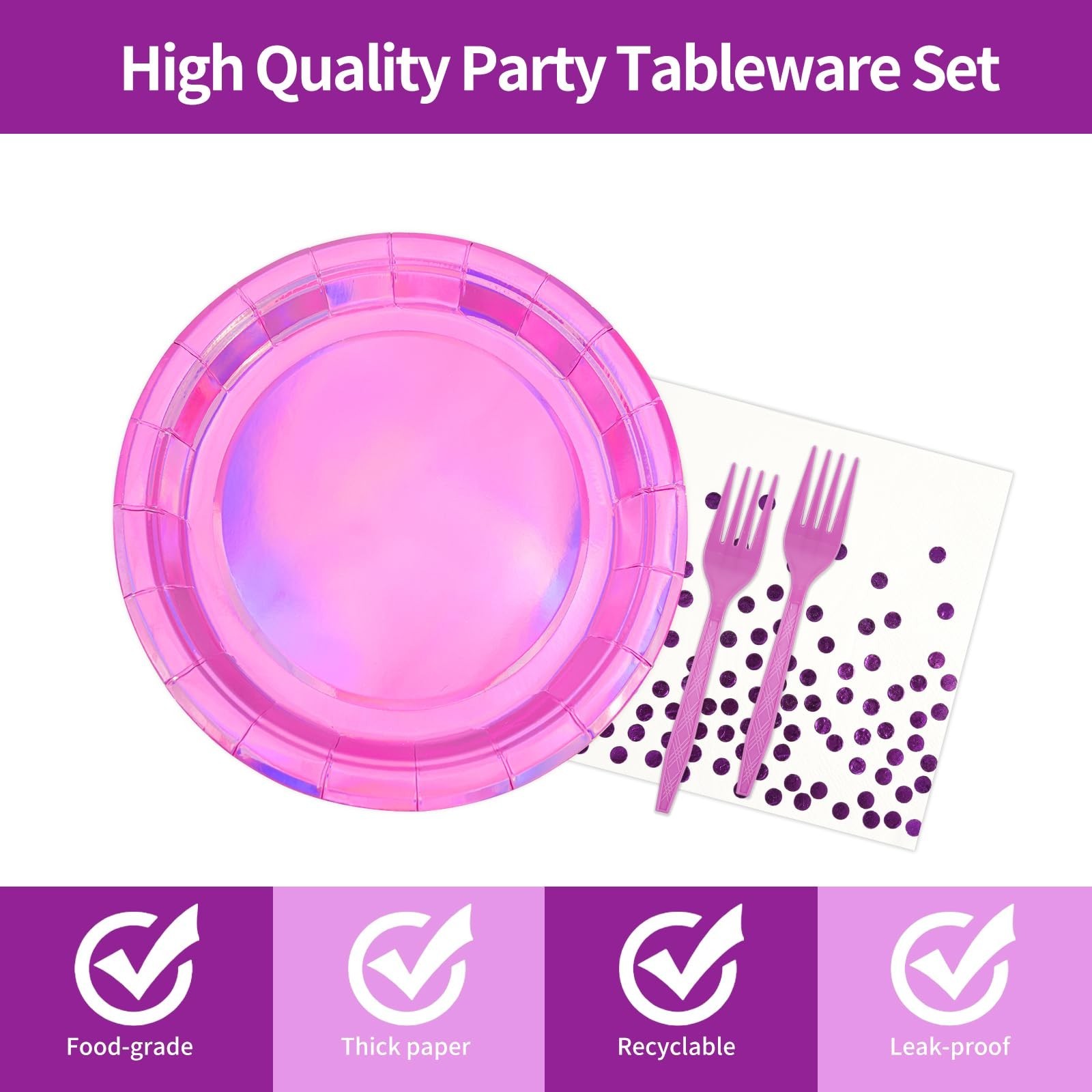как выглядит 72Pcs Iridescent Pink Plates and Napkins Party Supplies, Hot Pink Holographic... фото