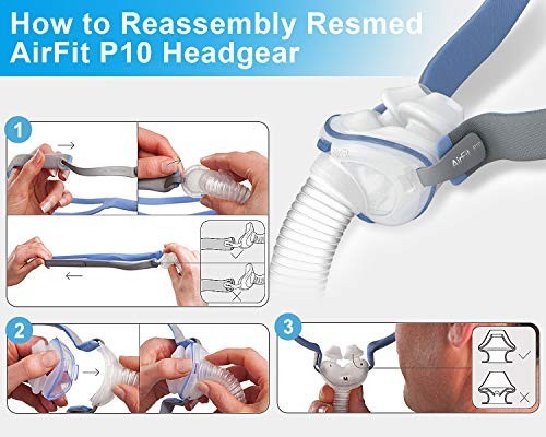 Replacement Headgear for P10 Nasal Pillow Mask - 3 Elastic Straps Clips Set