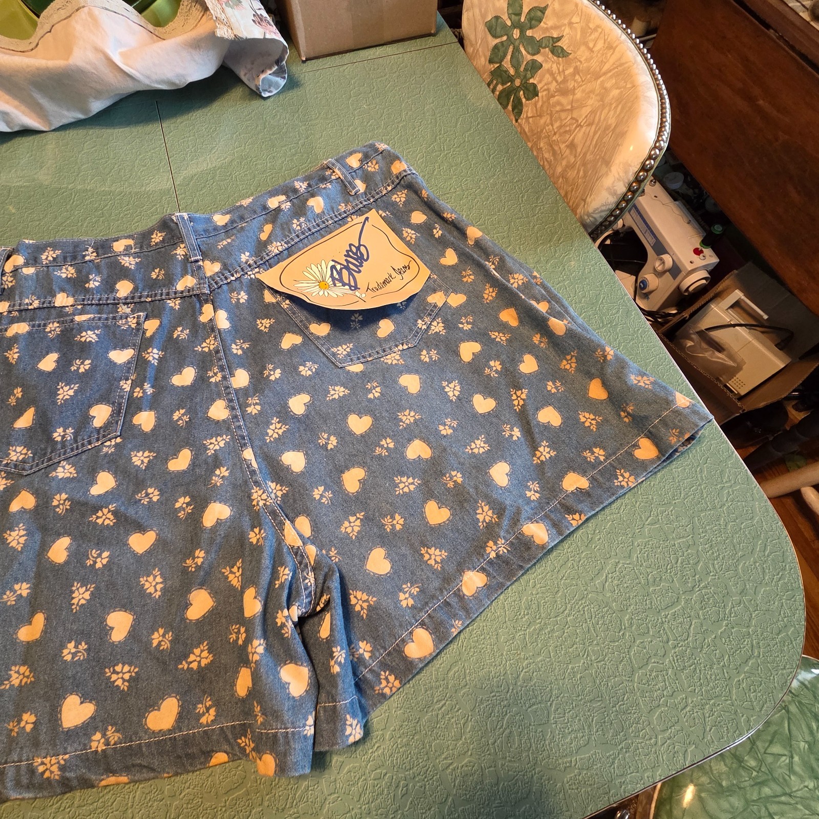 Vintage 90s Blues Denim Skort Heart Print High Waist A-Line Size 2X