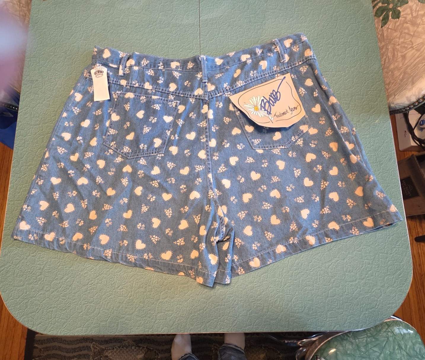 как выглядит Vintage 90s Blues Denim Skort Heart Print High Waist A-Line Size 2X фото