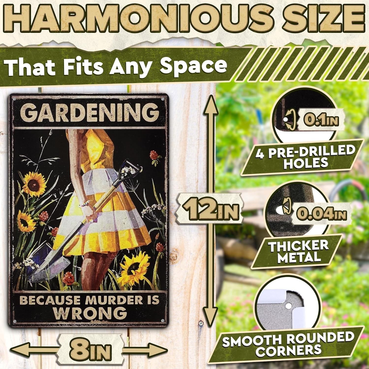 Vintage Funny Garden Sign - 'Gardening Because Murder is Wrong' 8x12 Tin Art