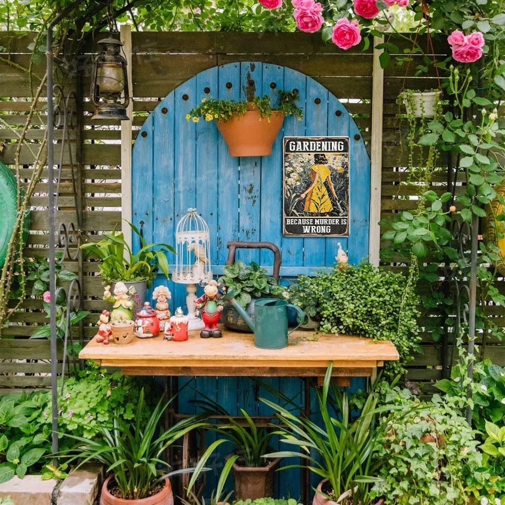 Funny Vintage Metal Garden Sign - Gardening Because Murder Is Wrong 7.8x11.8