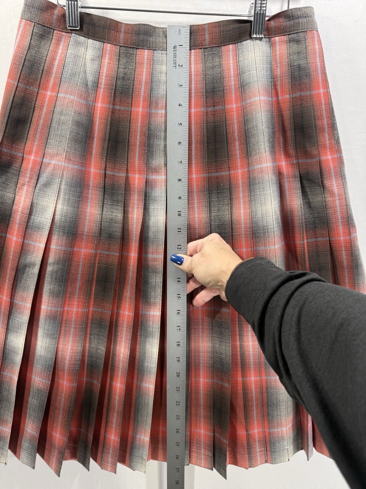 как выглядит Pendleton 100 Virgin Wool Pleated Plaid Skirt Orange Gray Size 10 Made in USA фото