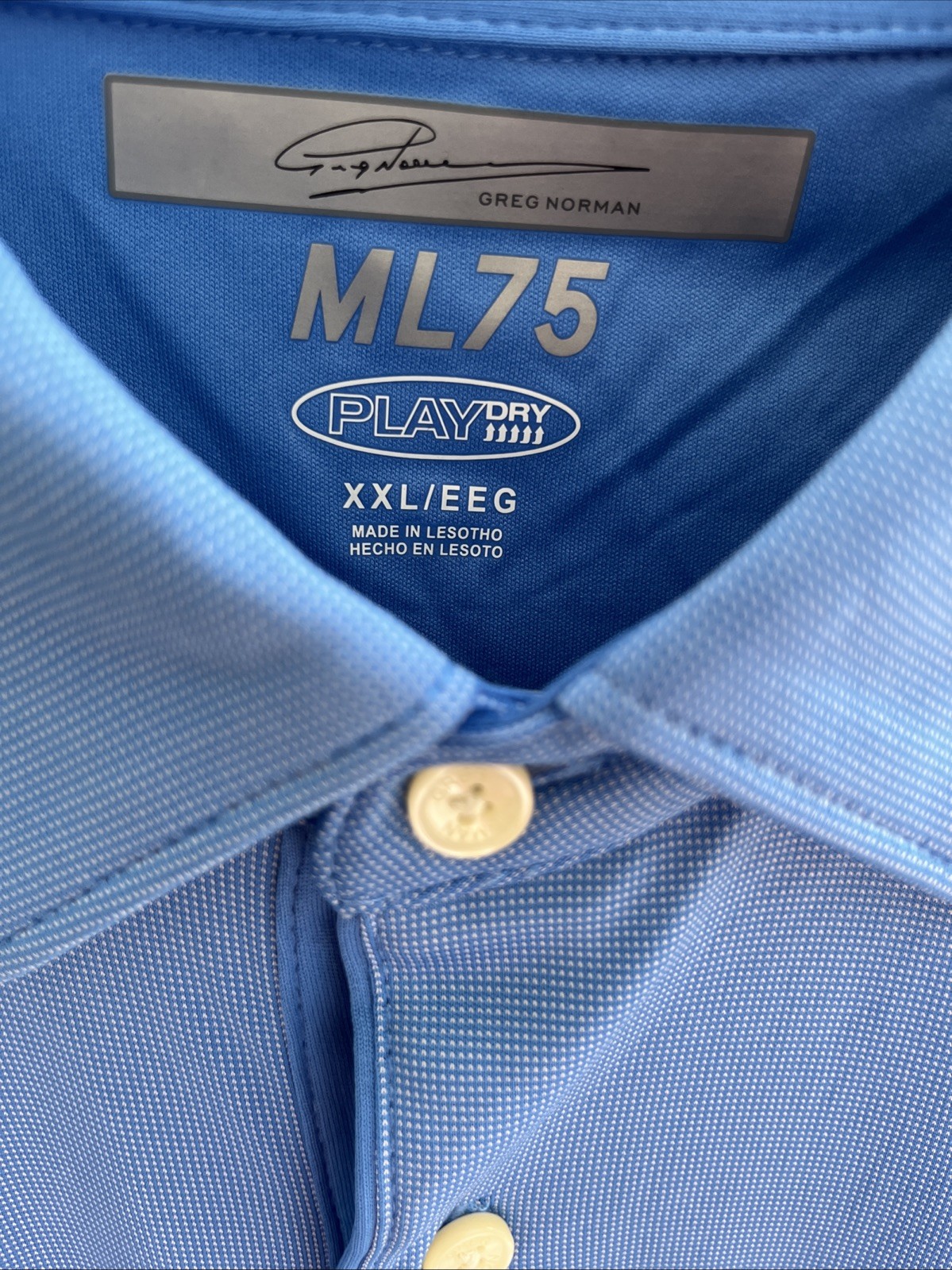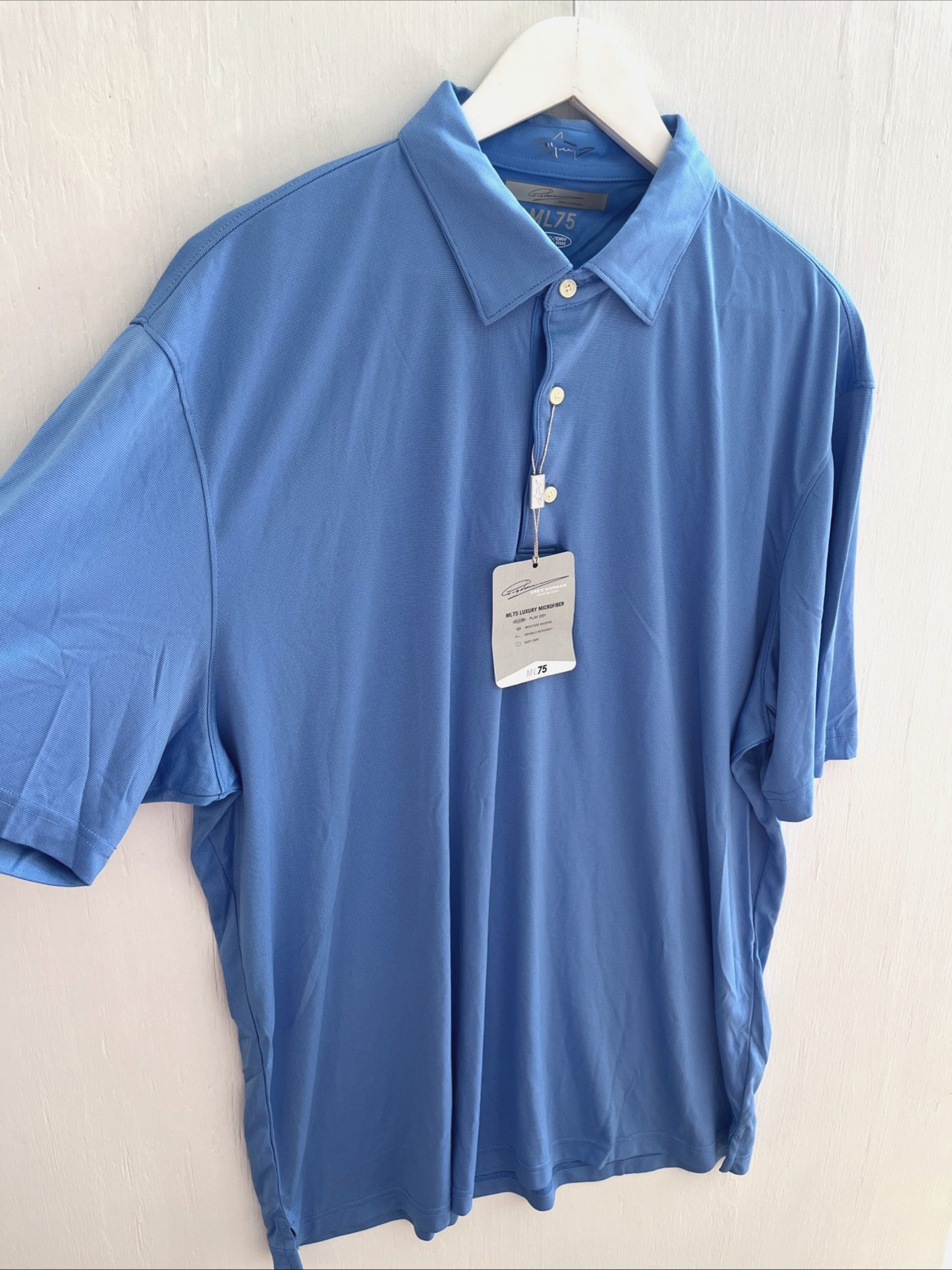 как выглядит GREG NORMAN ML75 PlayDry Blue Performance Polo Shirt Microfiber Golf XXL NWT фото