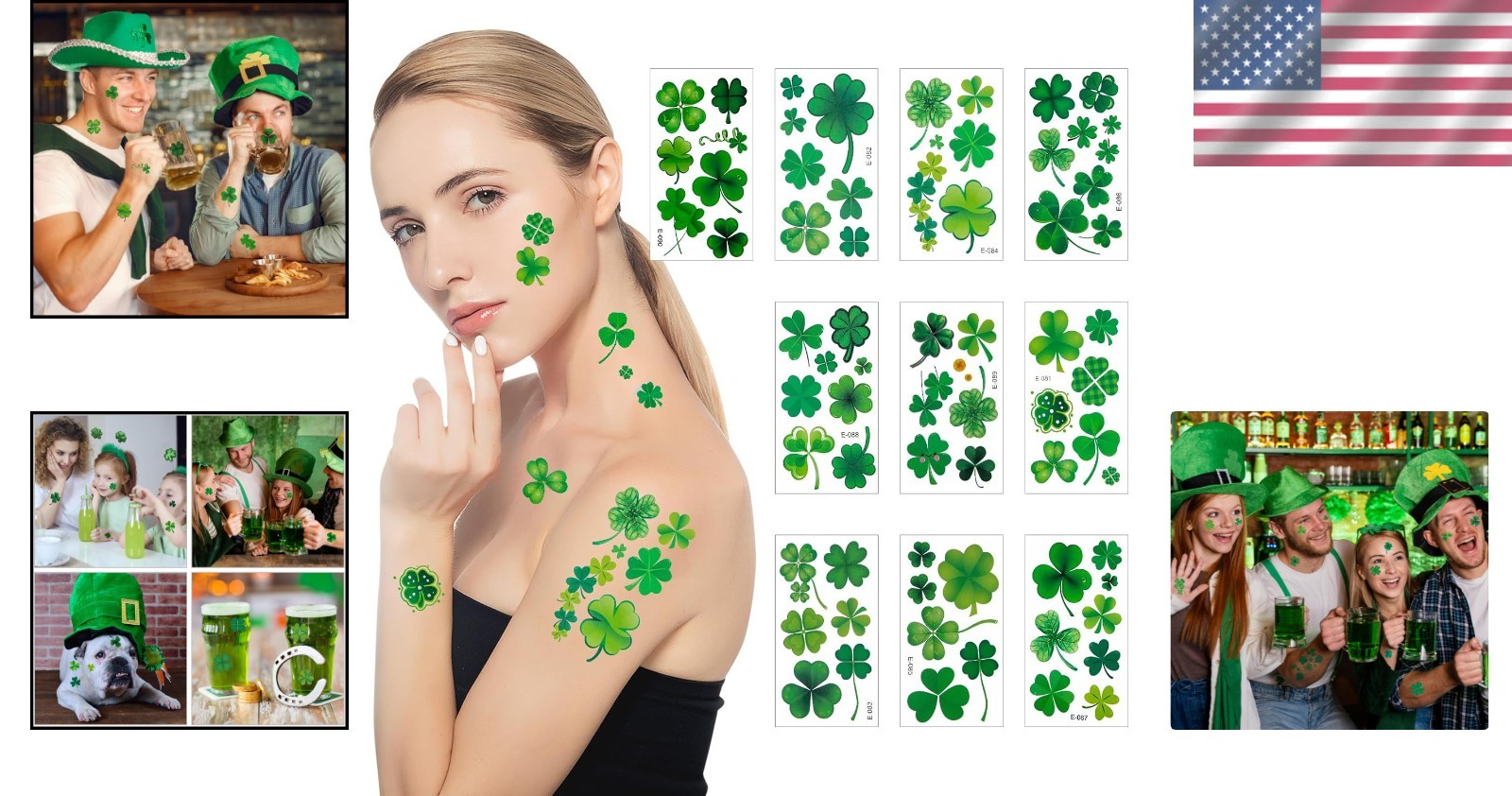 как выглядит Waterproof Shamrock Temporary Tattoos for St. Patrick