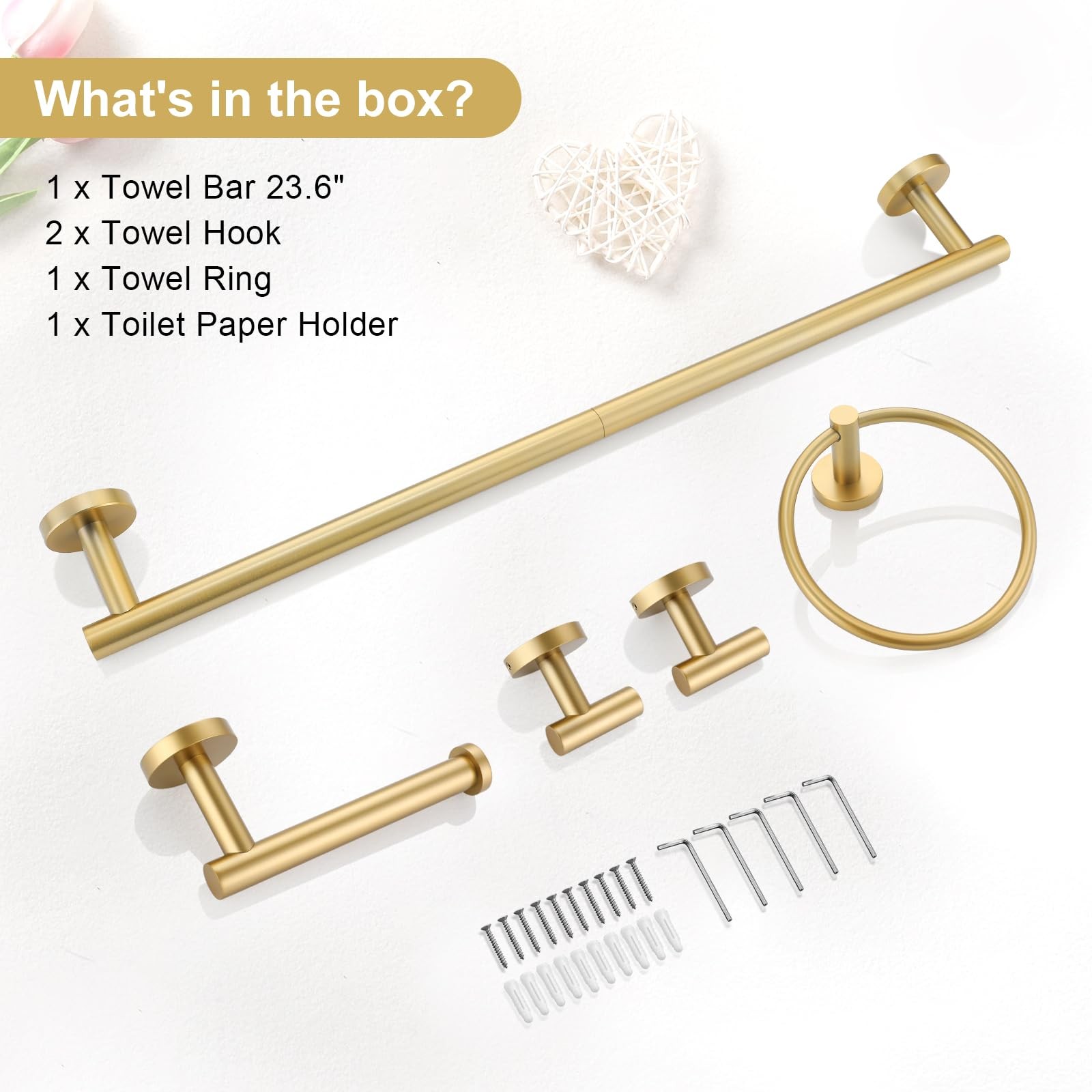 5 Piece Bathroom Accessories Set Brushed Gold Bathroom Hardware Set 23.6 Inch...