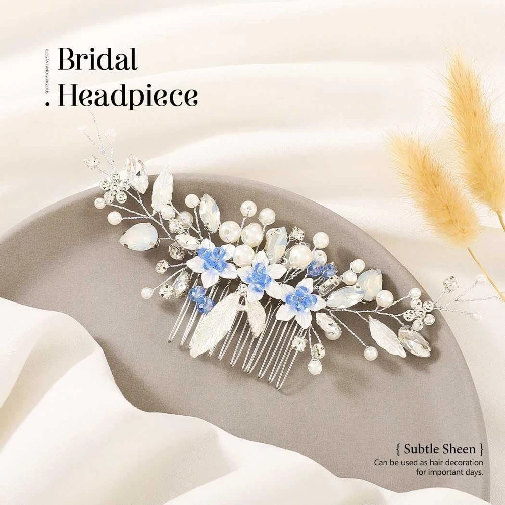 как выглядит Silver Flower Bride Wedding Hair Comb Pearl Bridal Leaf Hair Accessories фото