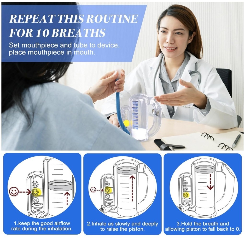 Breathing Exercise Device for Lungs, Deep Breathing Trainer for Adults - 5000ml