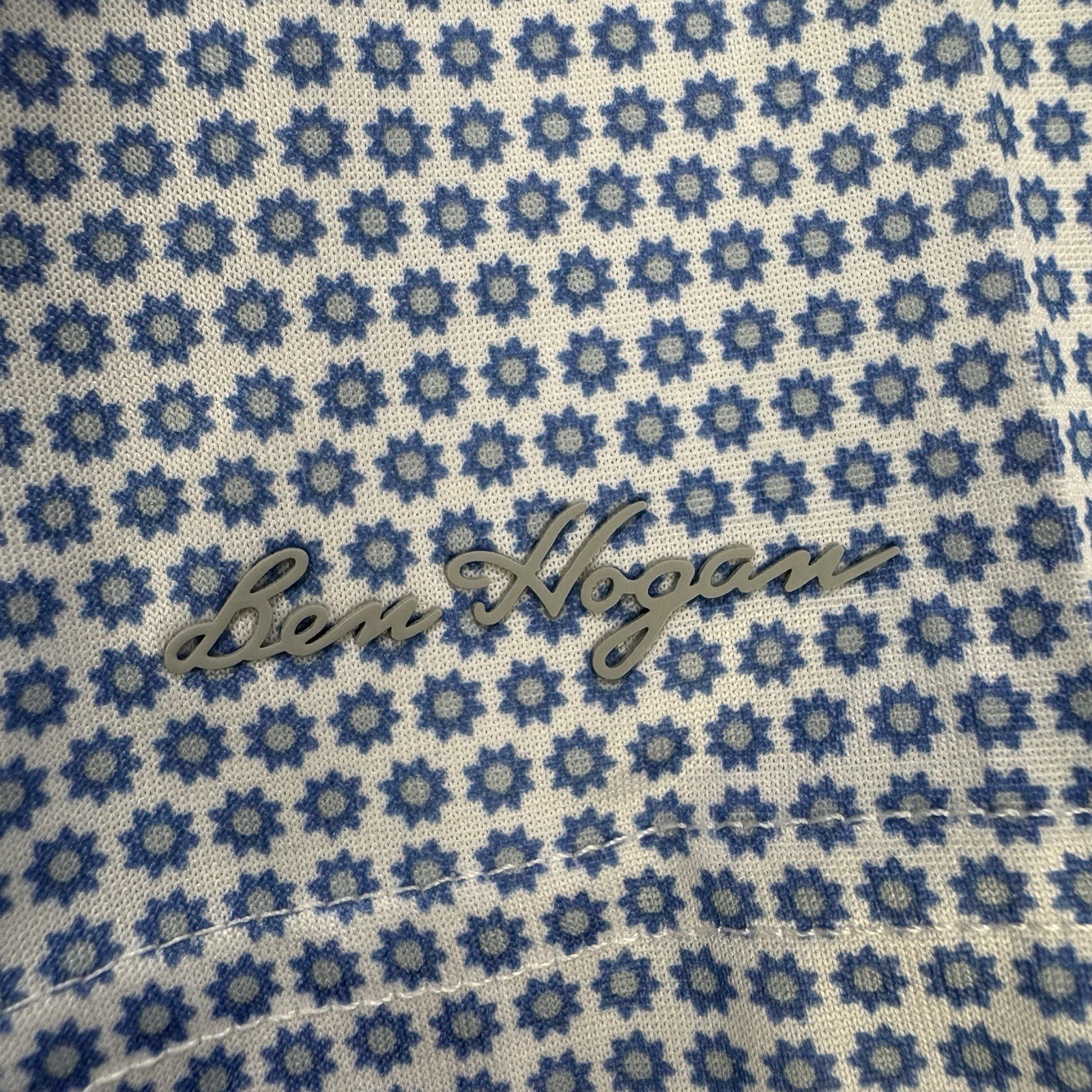 как выглядит Ben Hogan Performance Shirt Polo Mens M Short S/S Blue White AOP Sun WT5527 фото