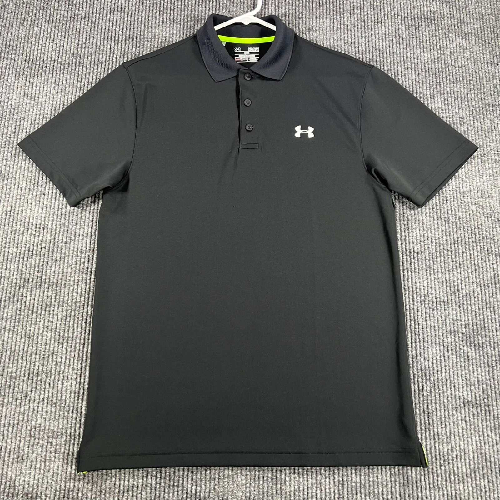 Under Armour Polo Shirt Mens Medium Black Short Sleeve Loose Fit Heat Gear Golf
