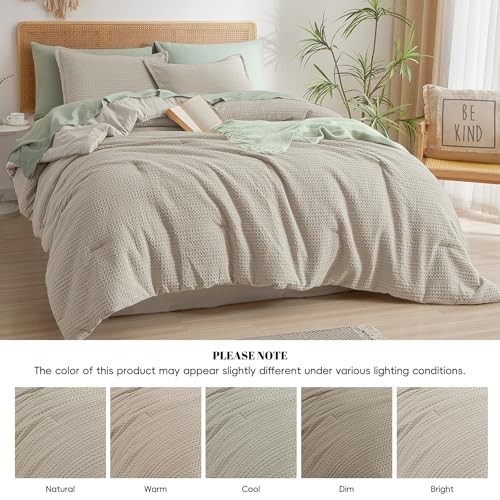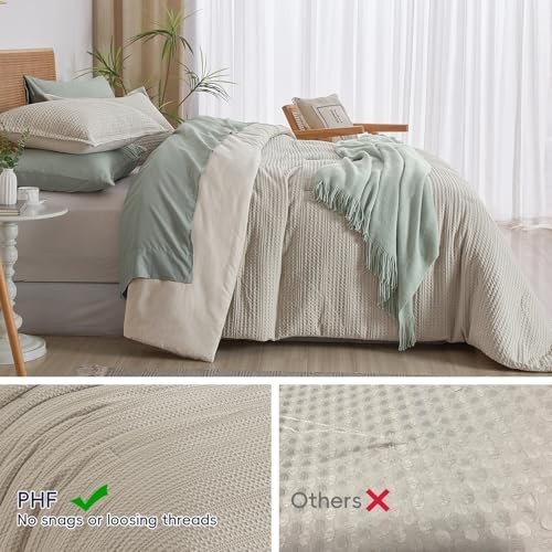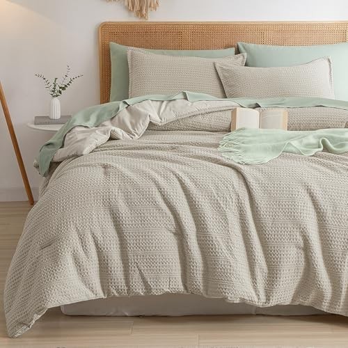 King Size Waffle Weave Comforter Set - Lightweight, Breathable Bedding with 2 Sh
