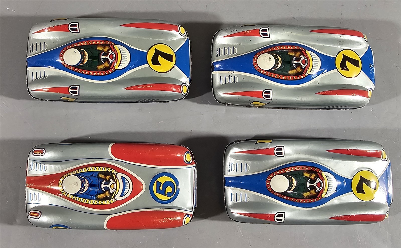 4 VINTAGE TIN LITHO SMALL COLORFUL FRICTION RACE CARS, JAPAN 2