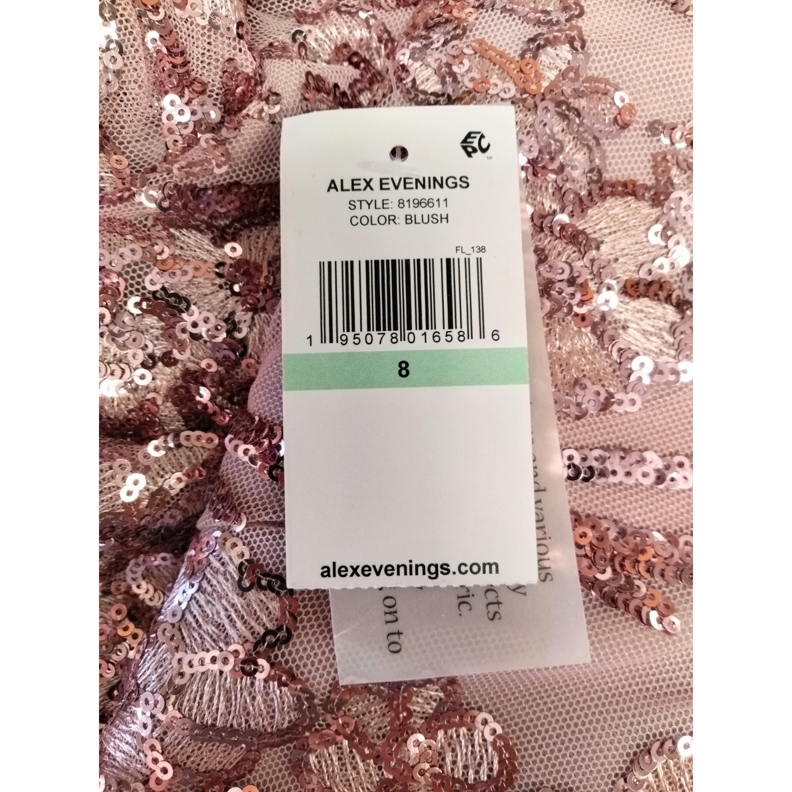 как выглядит Alex Evenings Long Sequin With Flutter Sleeves Special Occasion Dress, Blush, 8 фото