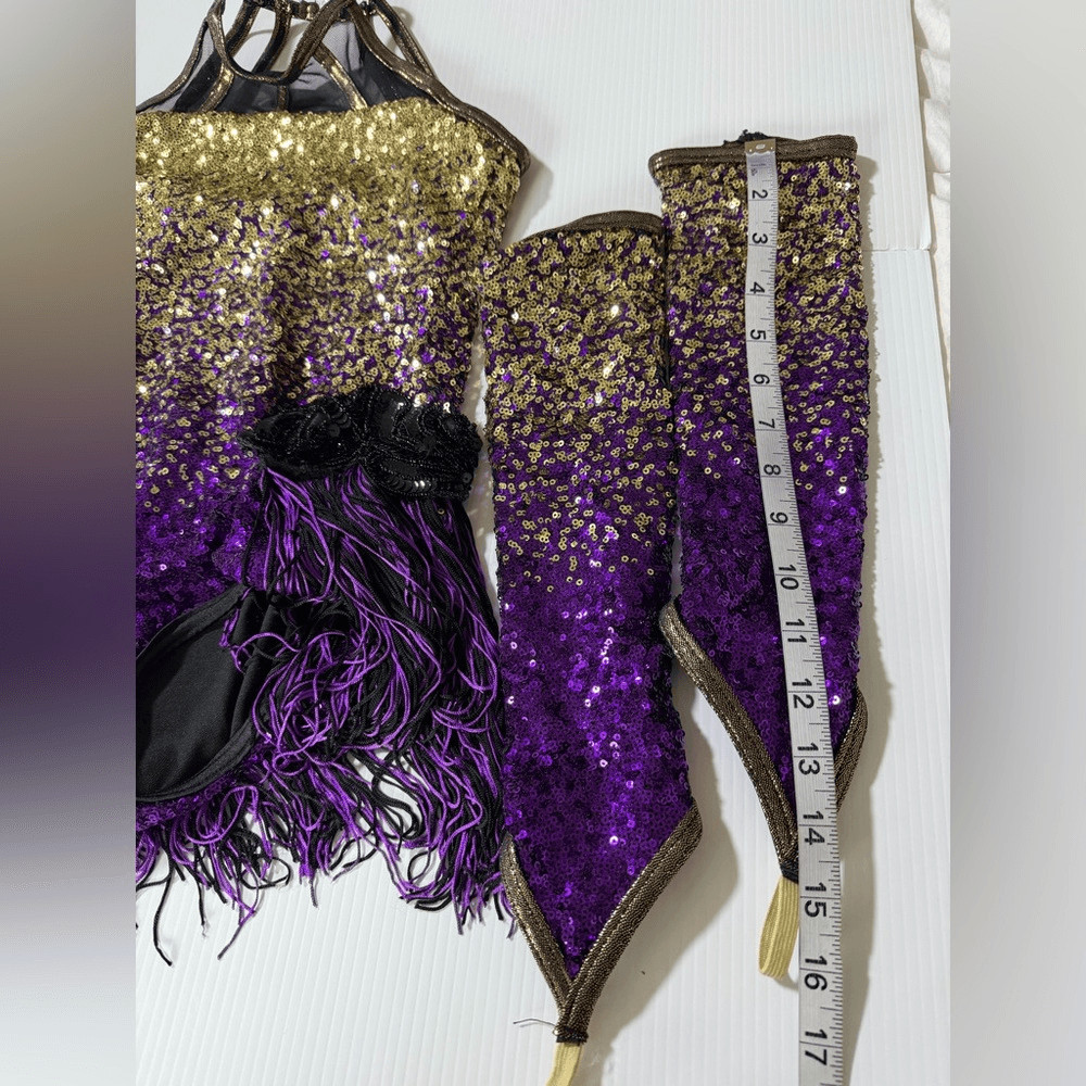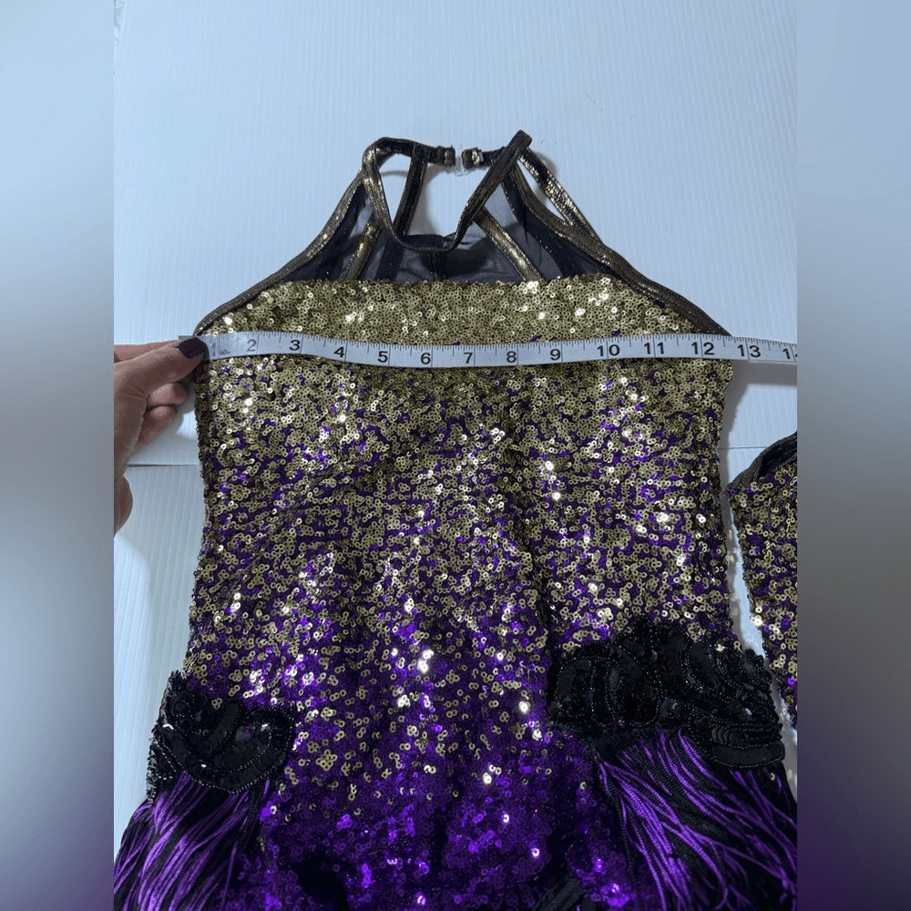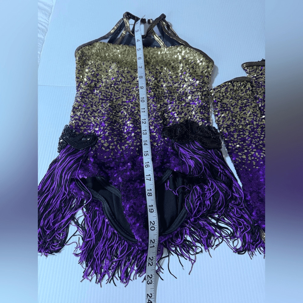 как выглядит WEISSMAN Dance Costume purple flapper fringe sequin Expensive 11135 MC Med child фото