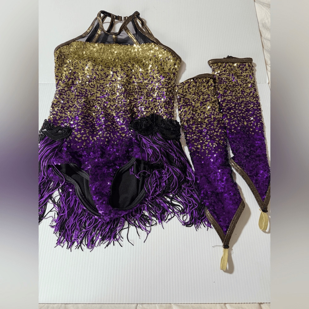 WEISSMAN Dance Costume purple flapper fringe sequin Expensive 11135 MC Med child
