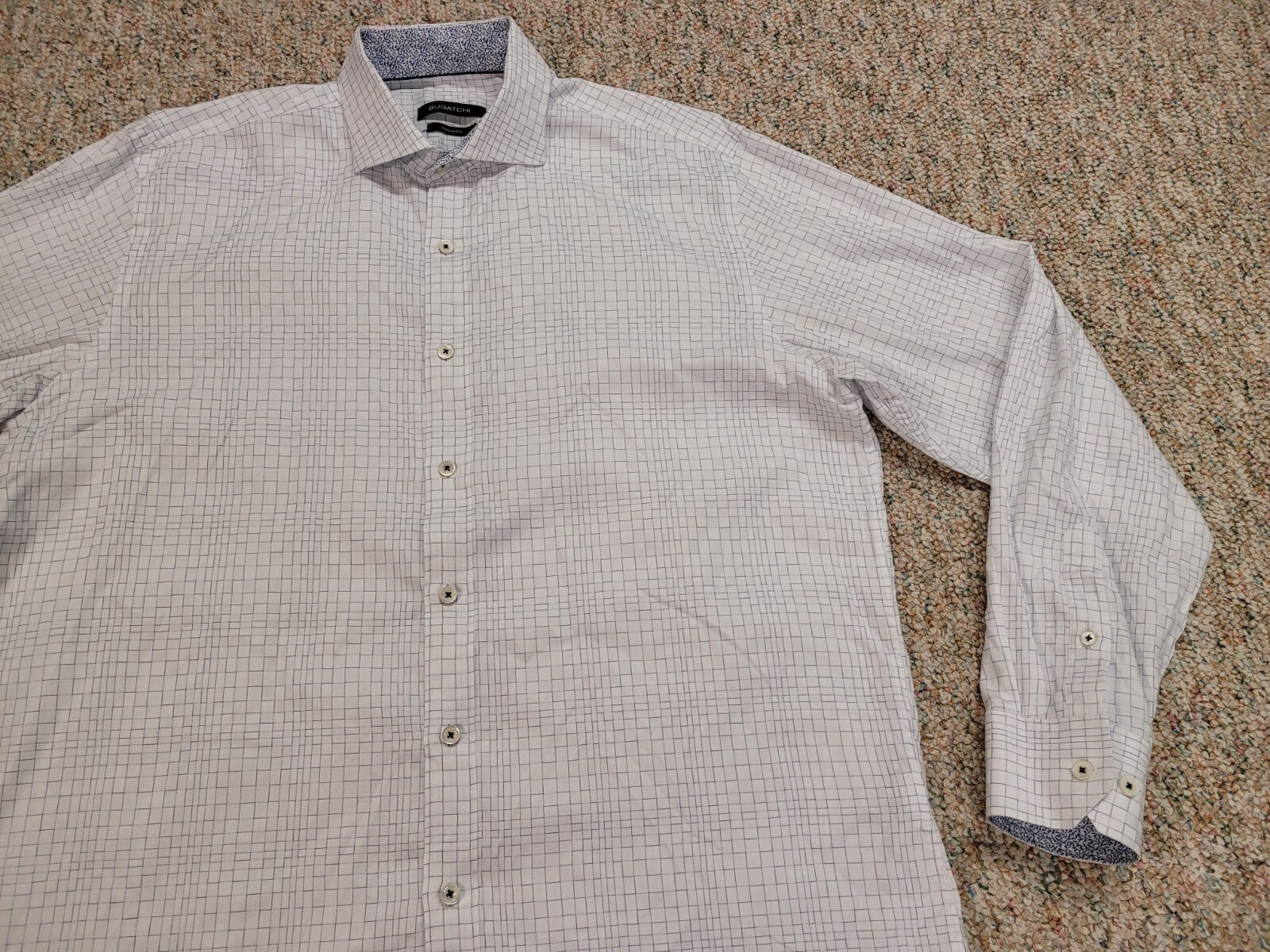 как выглядит Bugatchi Shirt Mens XL White Check Button Up Long Sleeve Classic Fit Preppy фото