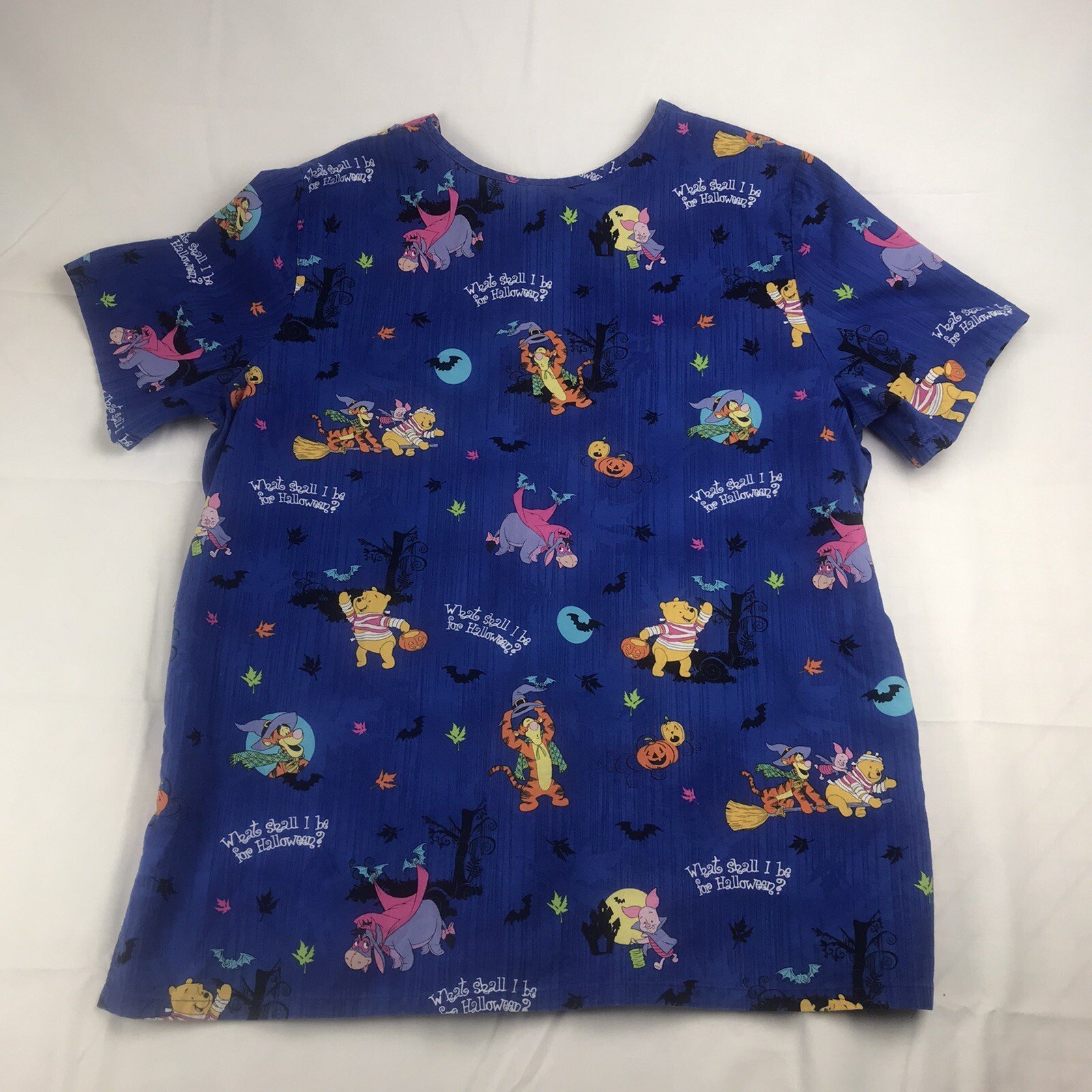 Wonderful World of Disney Winnie the Pooh Halloween Womens Scrub Top Size Large