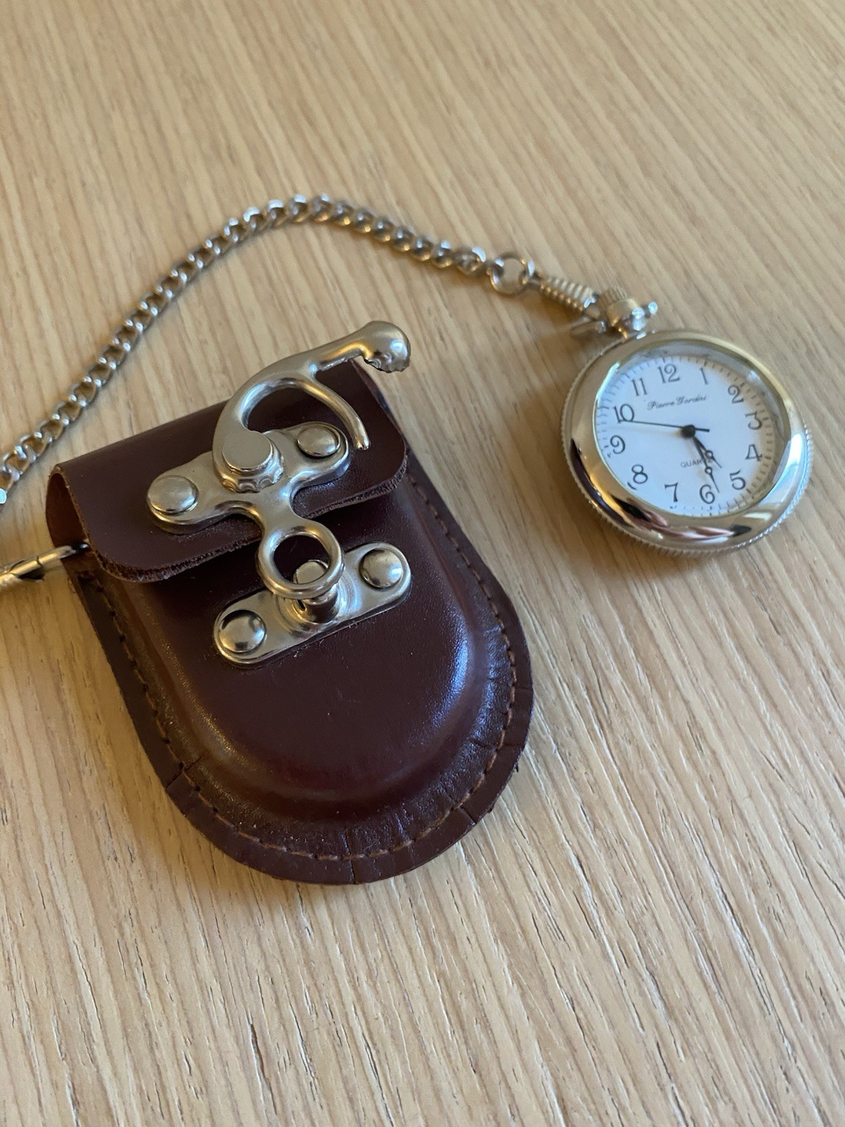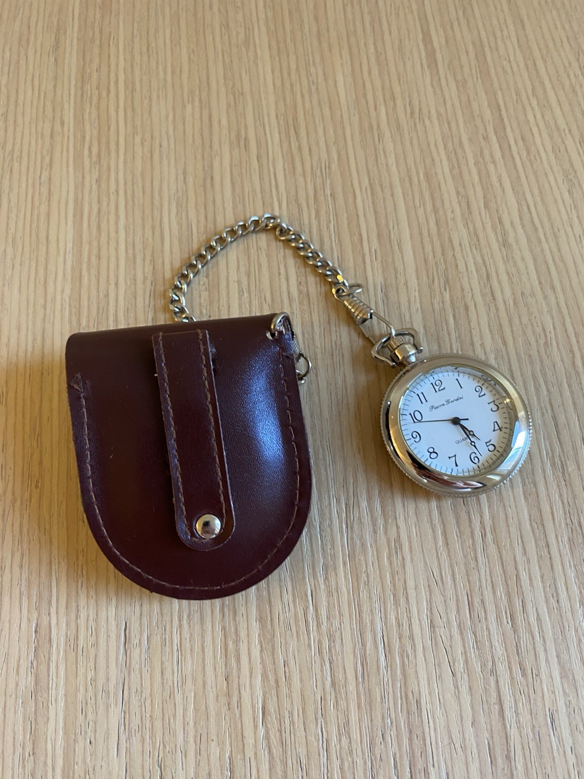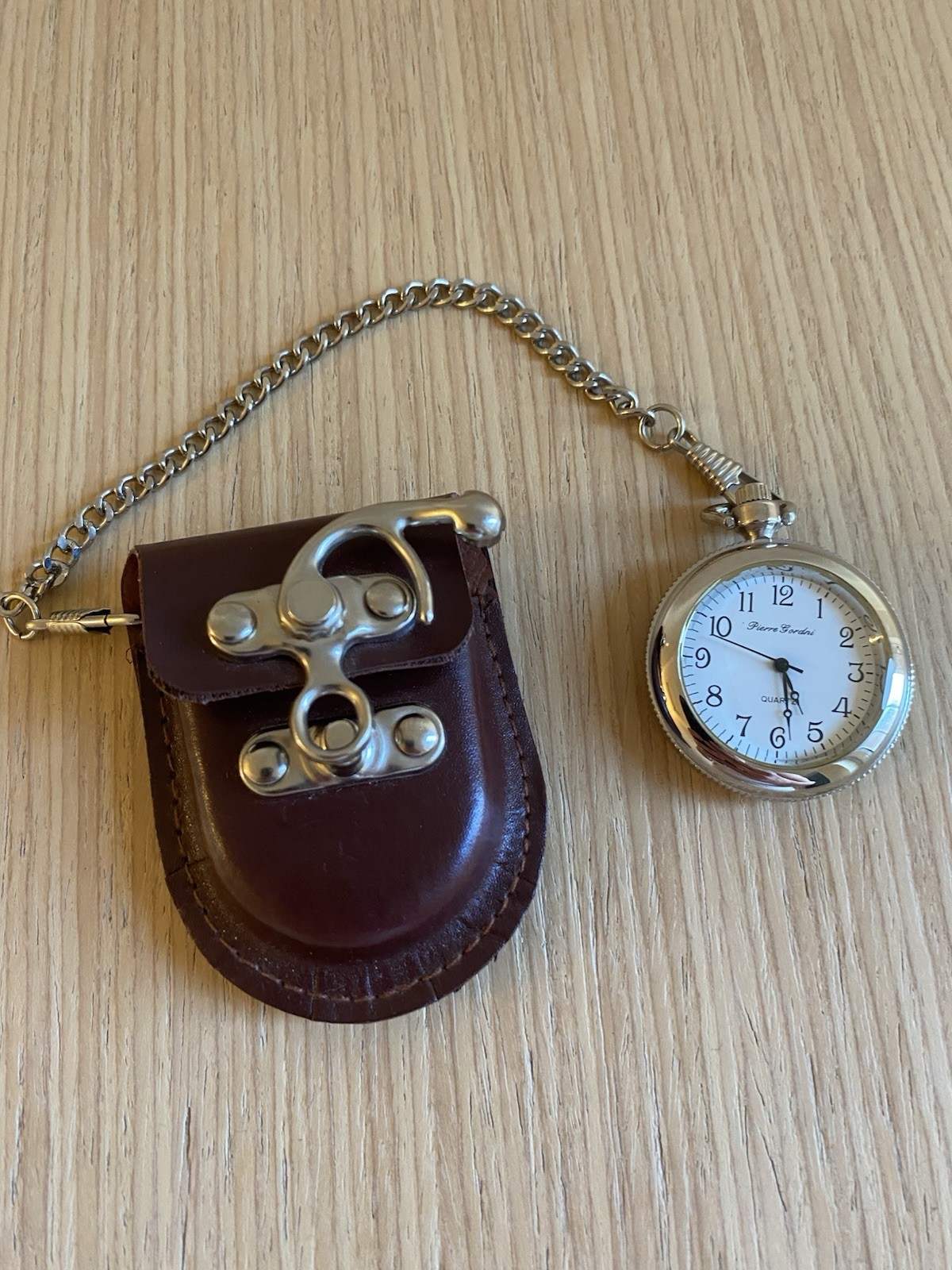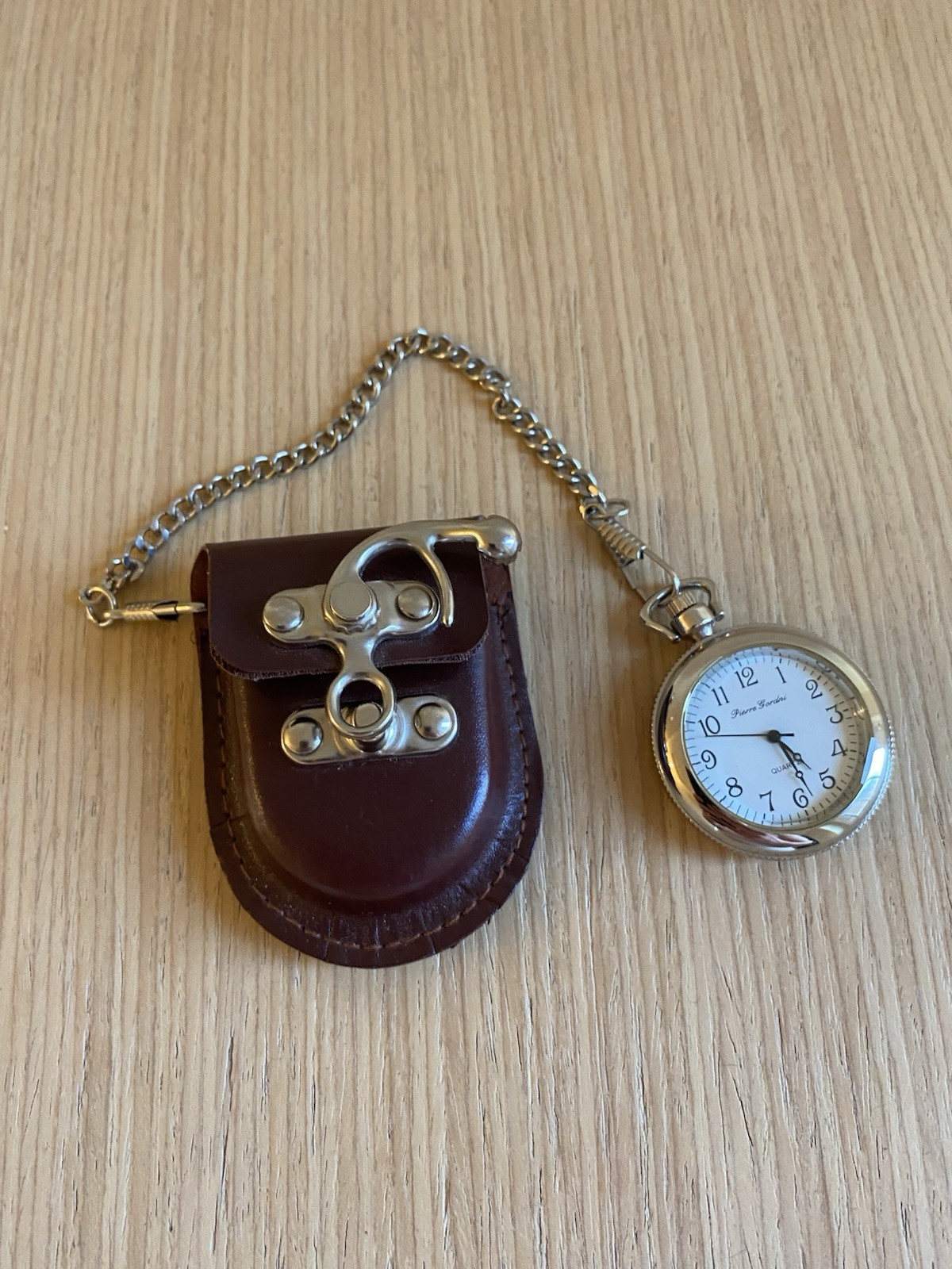 как выглядит Small Stainless Steel Pierre Gordni Pocket Watch With Case Untested Leather Case фото