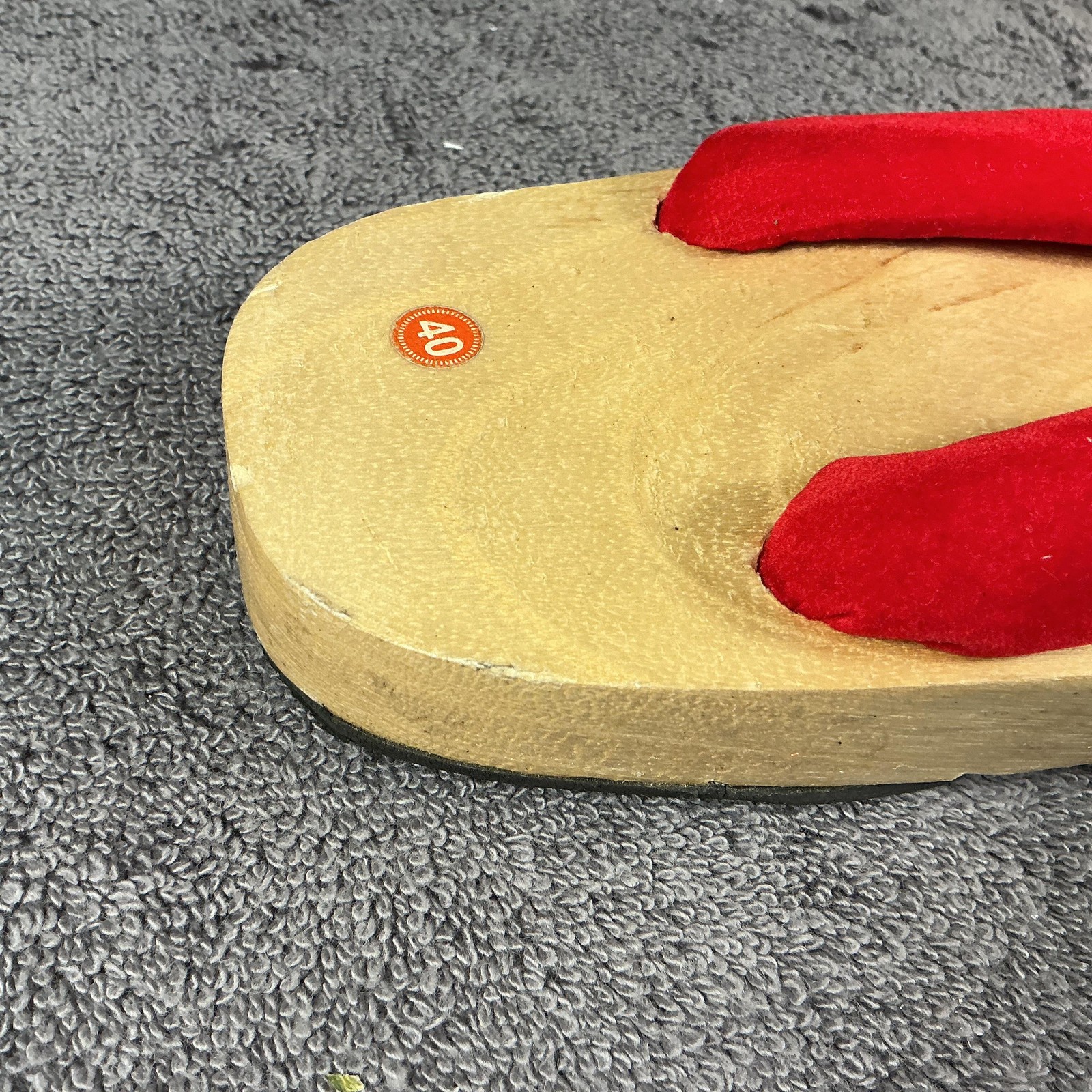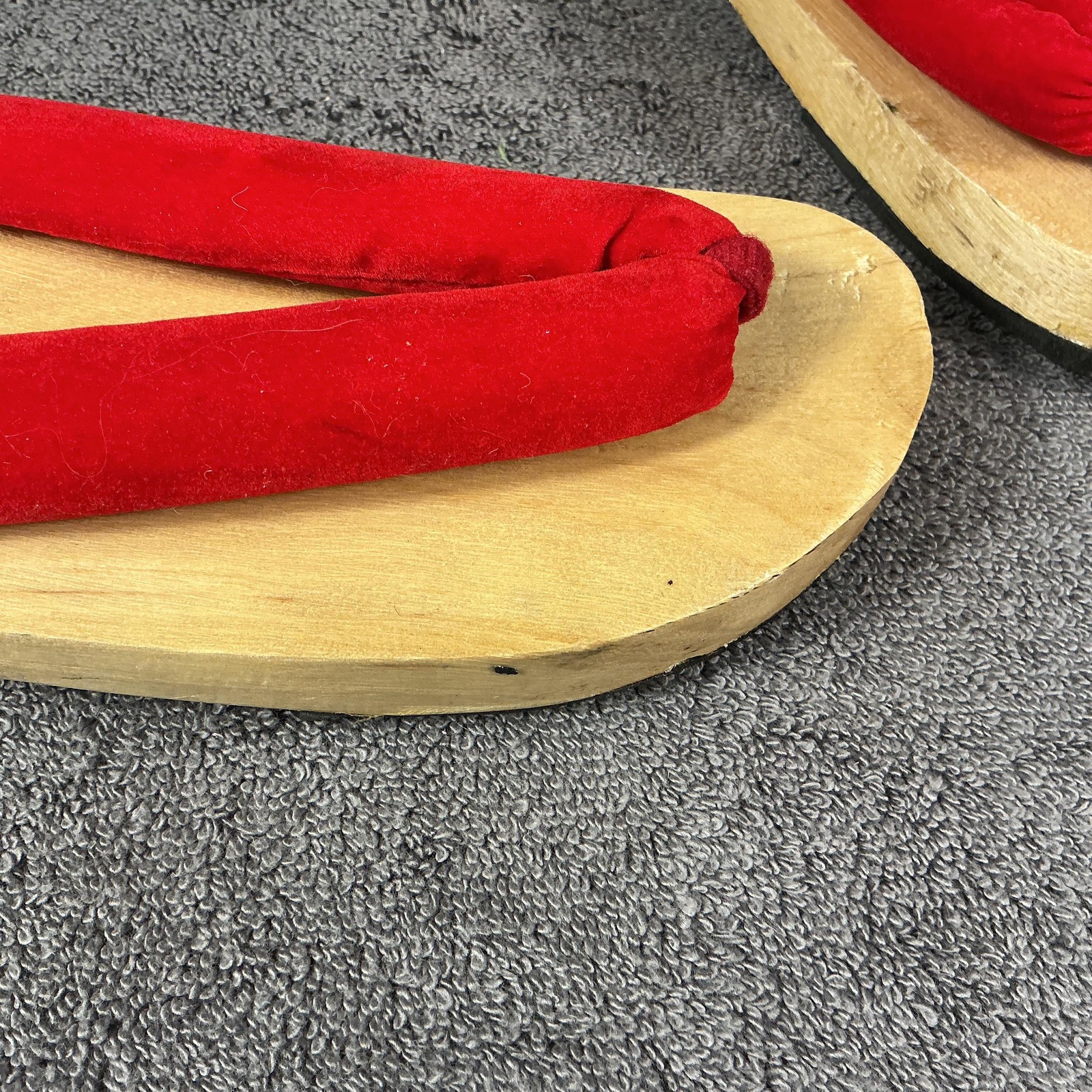 Japanese Geta Wooden Clogs Womens Size 9 Platform Thong Sandals Shoes Red Strap