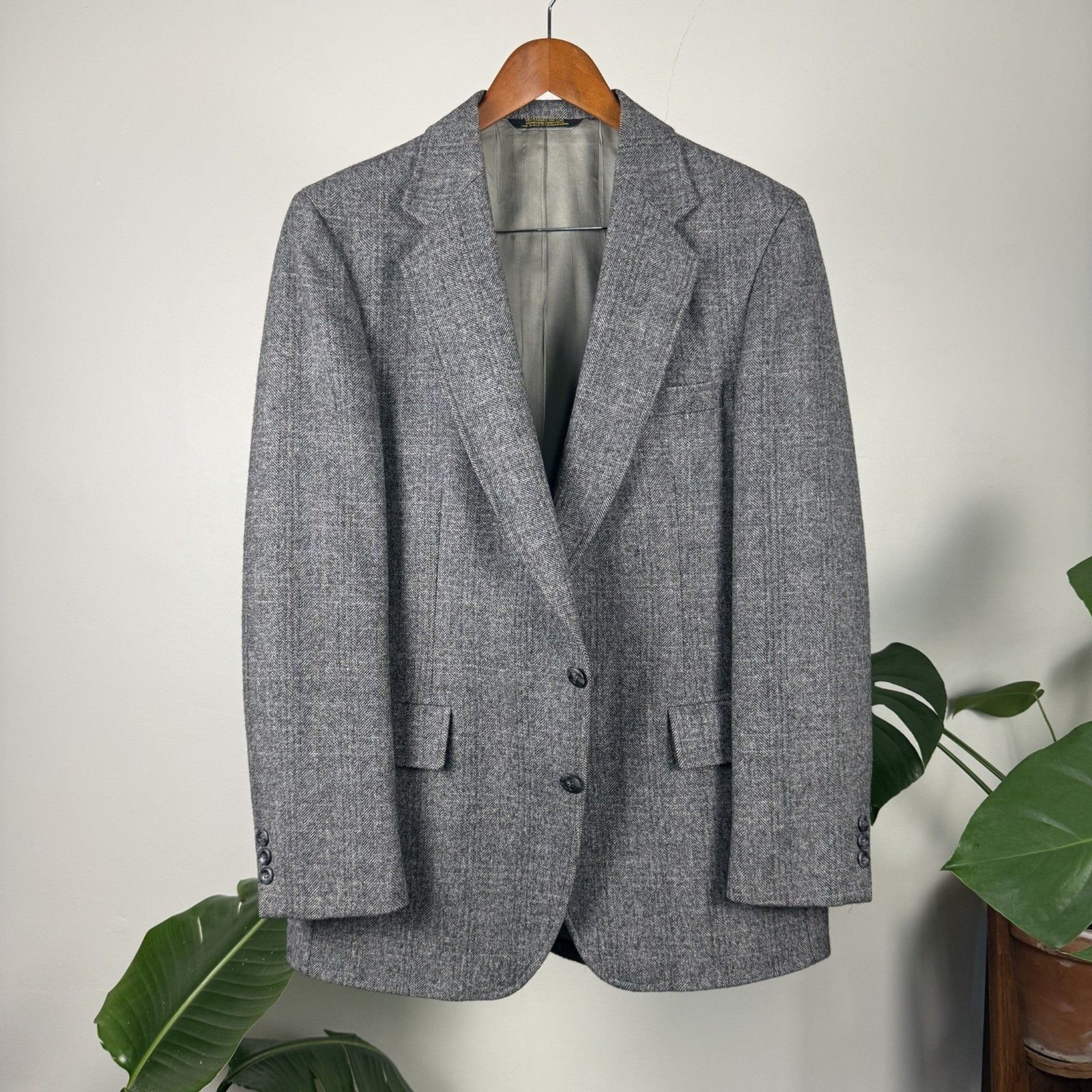 как выглядит Vintage 80s Wool Herringbone Windowpane Blazer Gray Oversized Menswear Jacket фото