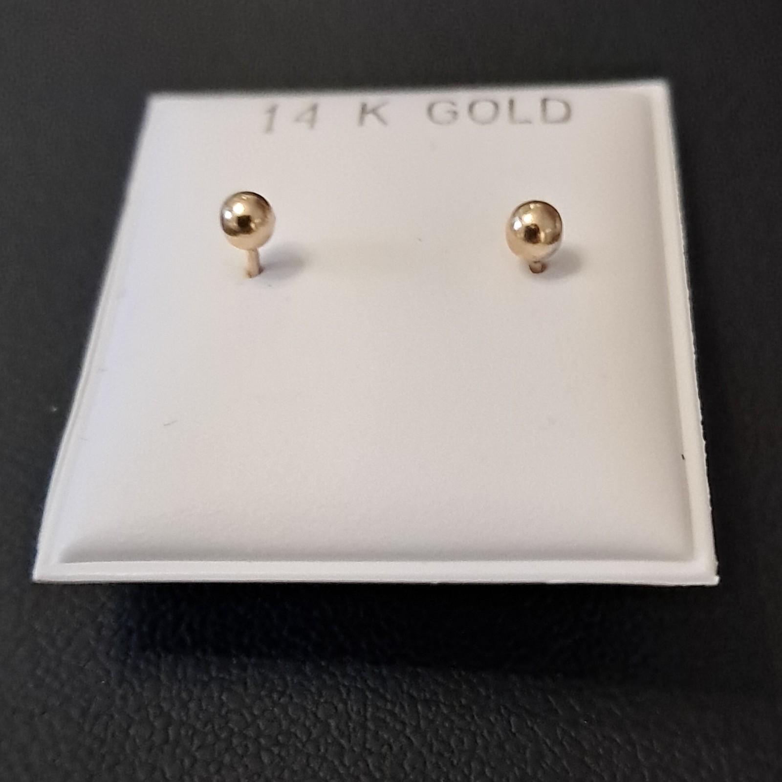 14k Yellow Gold Round Stud Earrings Butterfly Closure Children-Babysize 2mm