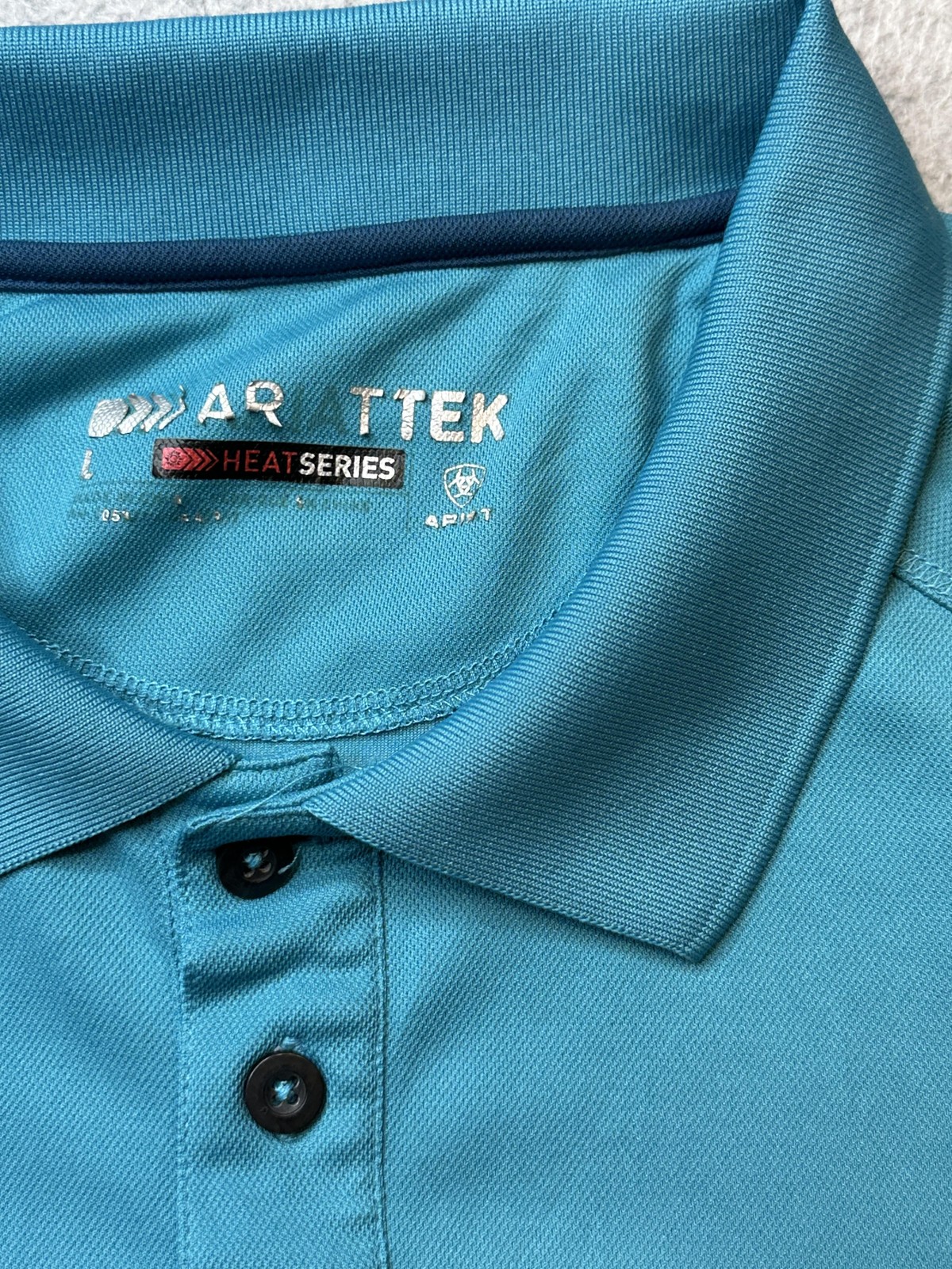 как выглядит Ariat Polo Shirt Mens Large Teal AriatTEK Heat Series Performance Golf Top фото