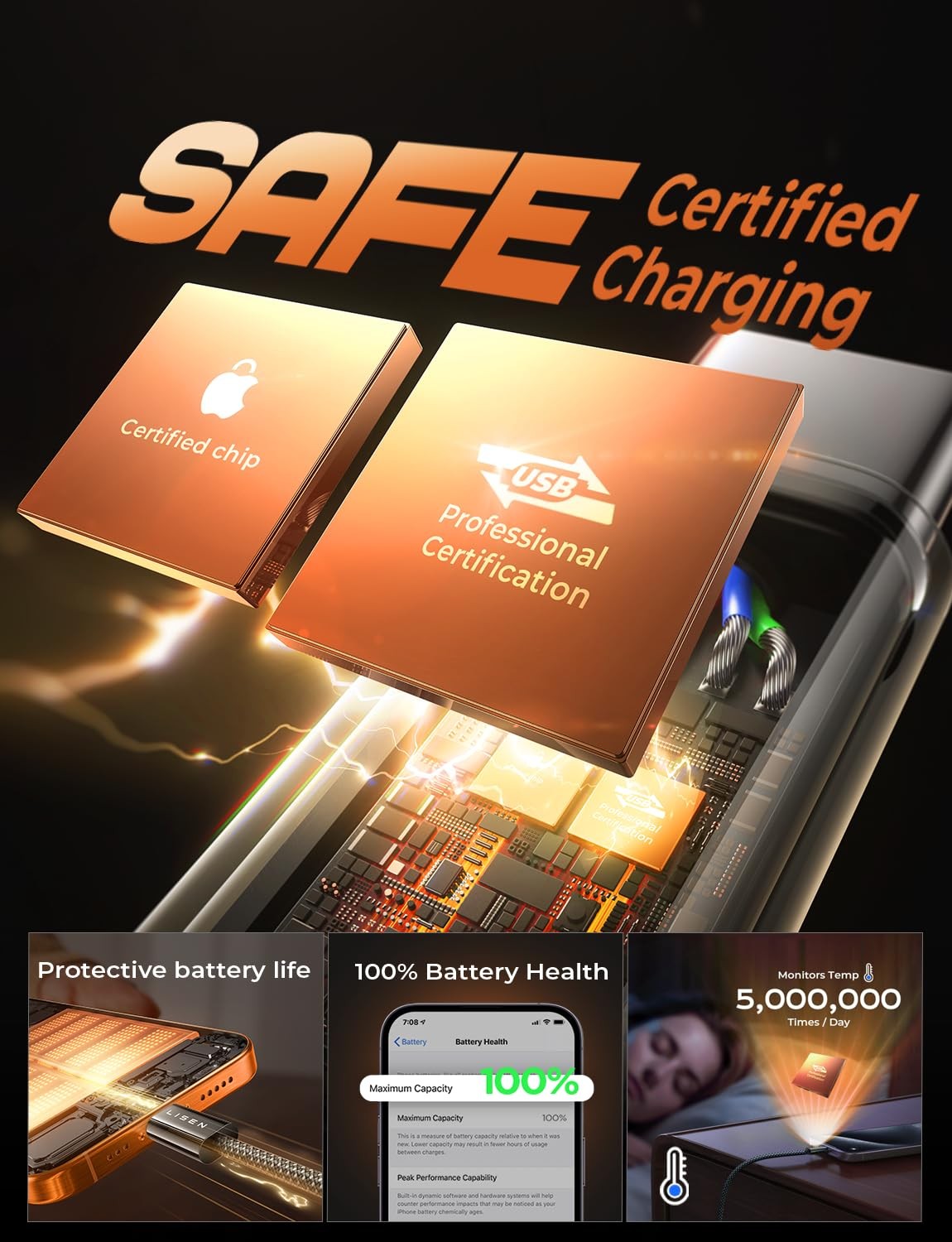 как выглядит LISEN USB C to C Cable, 5-Pack 3.3 3.3 6.6 6.6 10FT, Black фото