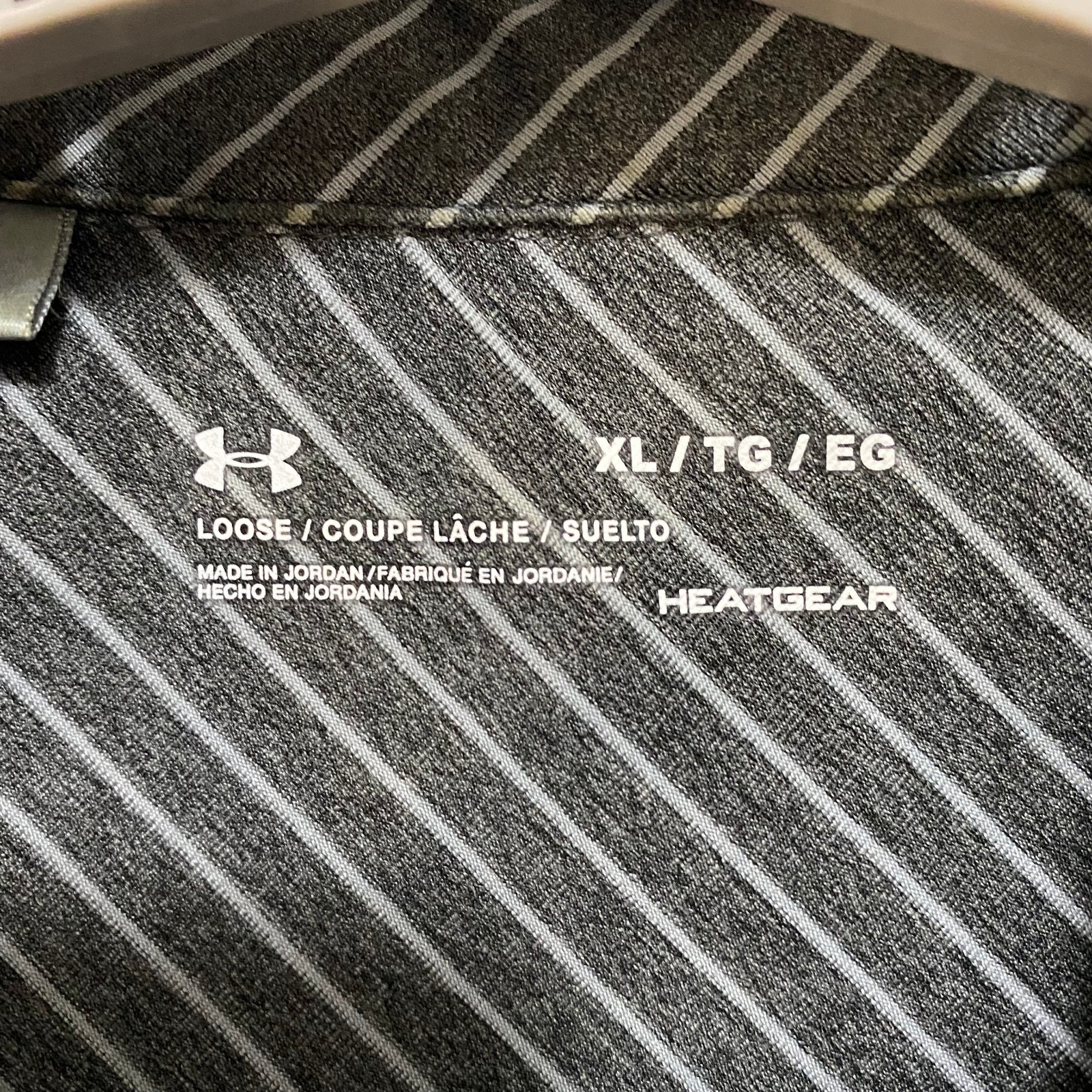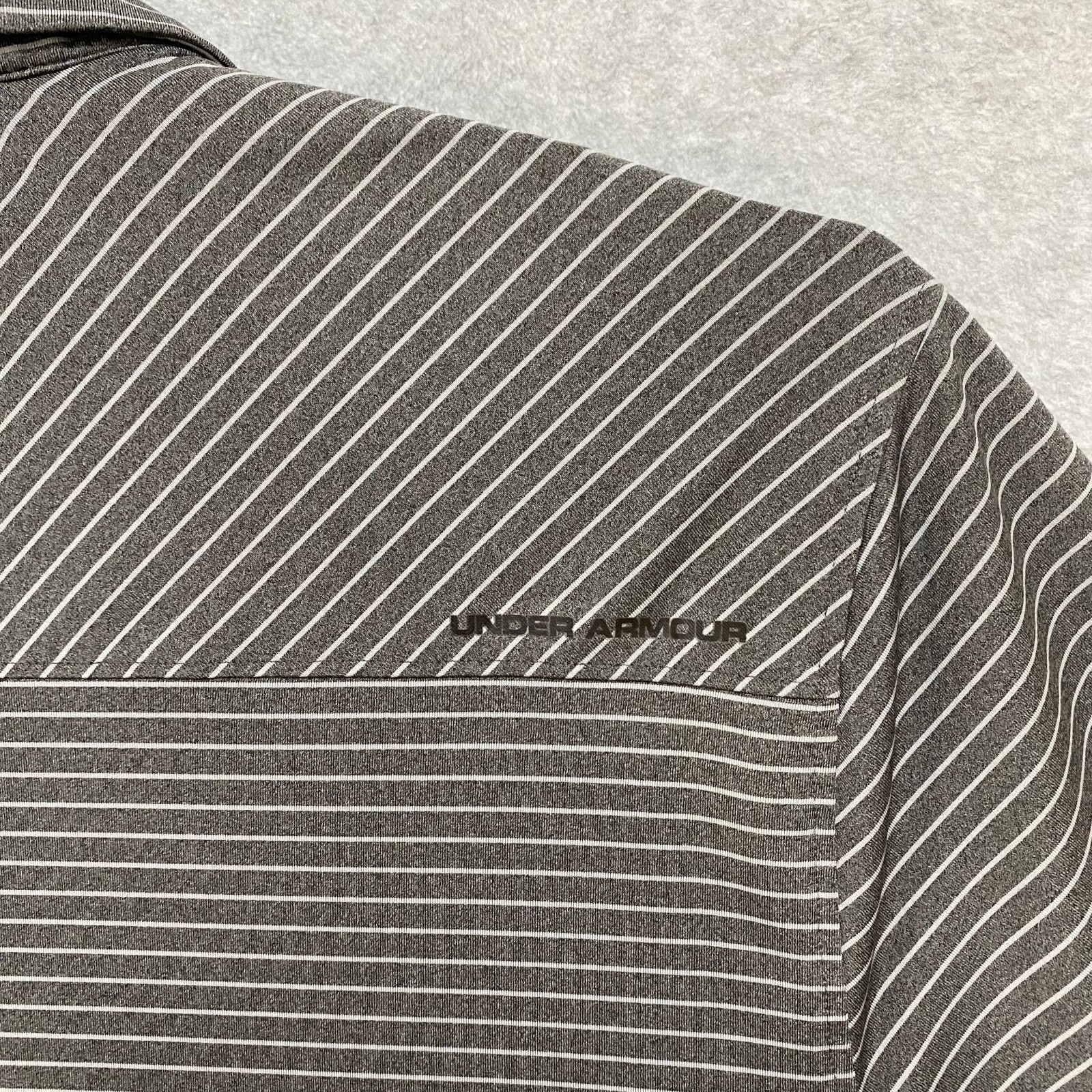 как выглядит Under Armour Mens XL Golf Polo Shirt Black/Gray Striped Loose Fit HeatGear фото