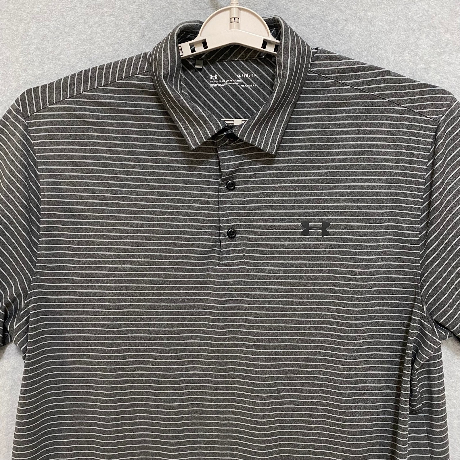 Under Armour Men's XL Golf Polo Shirt Black/Gray Striped Loose Fit HeatGear