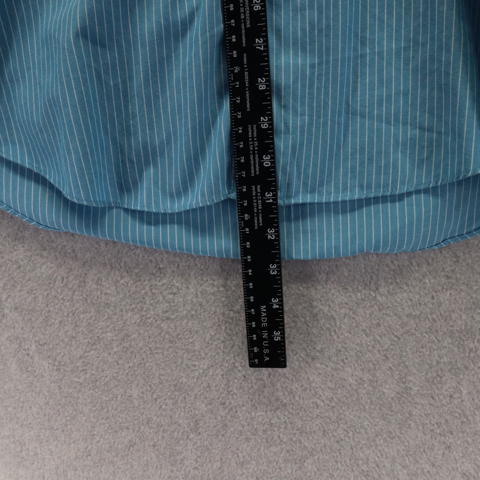 как выглядит Van Heusen Shirt Mens Large 16-16.5 Pocket Button Up Blue Striped Short Sleeve фото