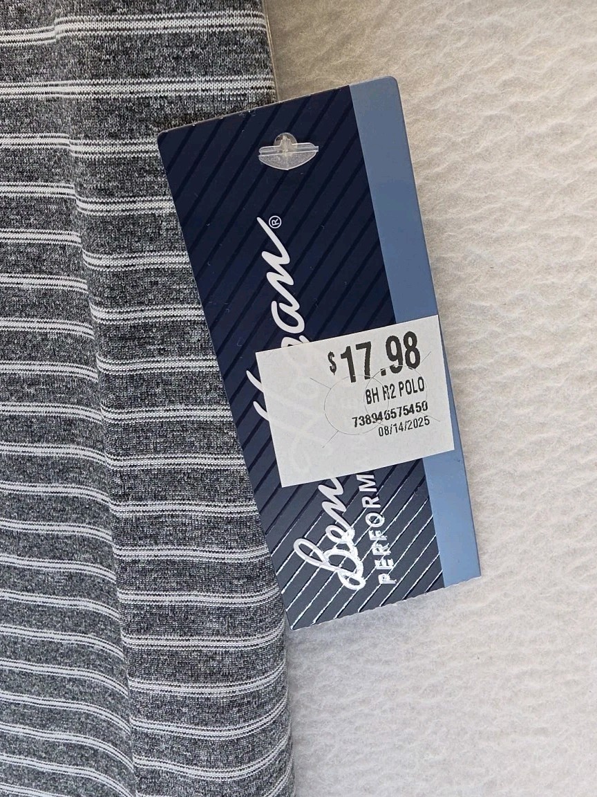 Ben Hogan Performance Short Sleeve Golf Shirt Polo Men's Small Grey With Stripes