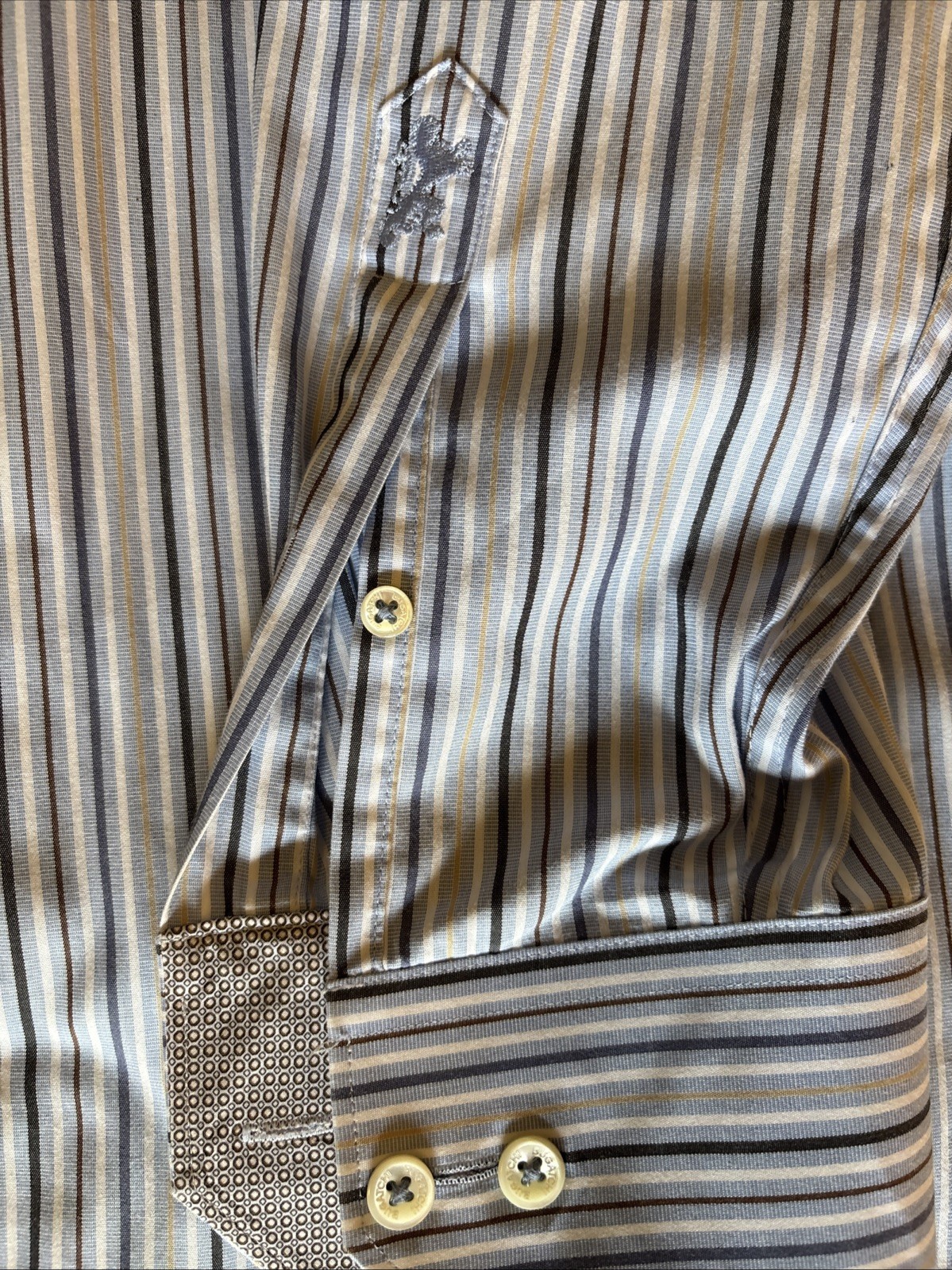 как выглядит Bugatchi Mens Button Up Shirt 16.5  Cotton gray Navy Blue Stripes Excellent C фото
