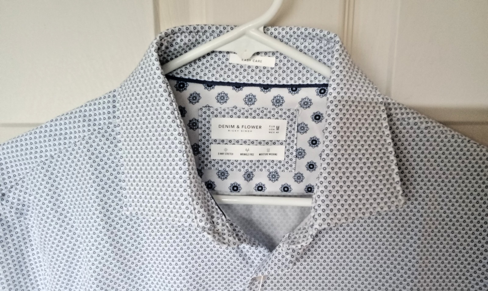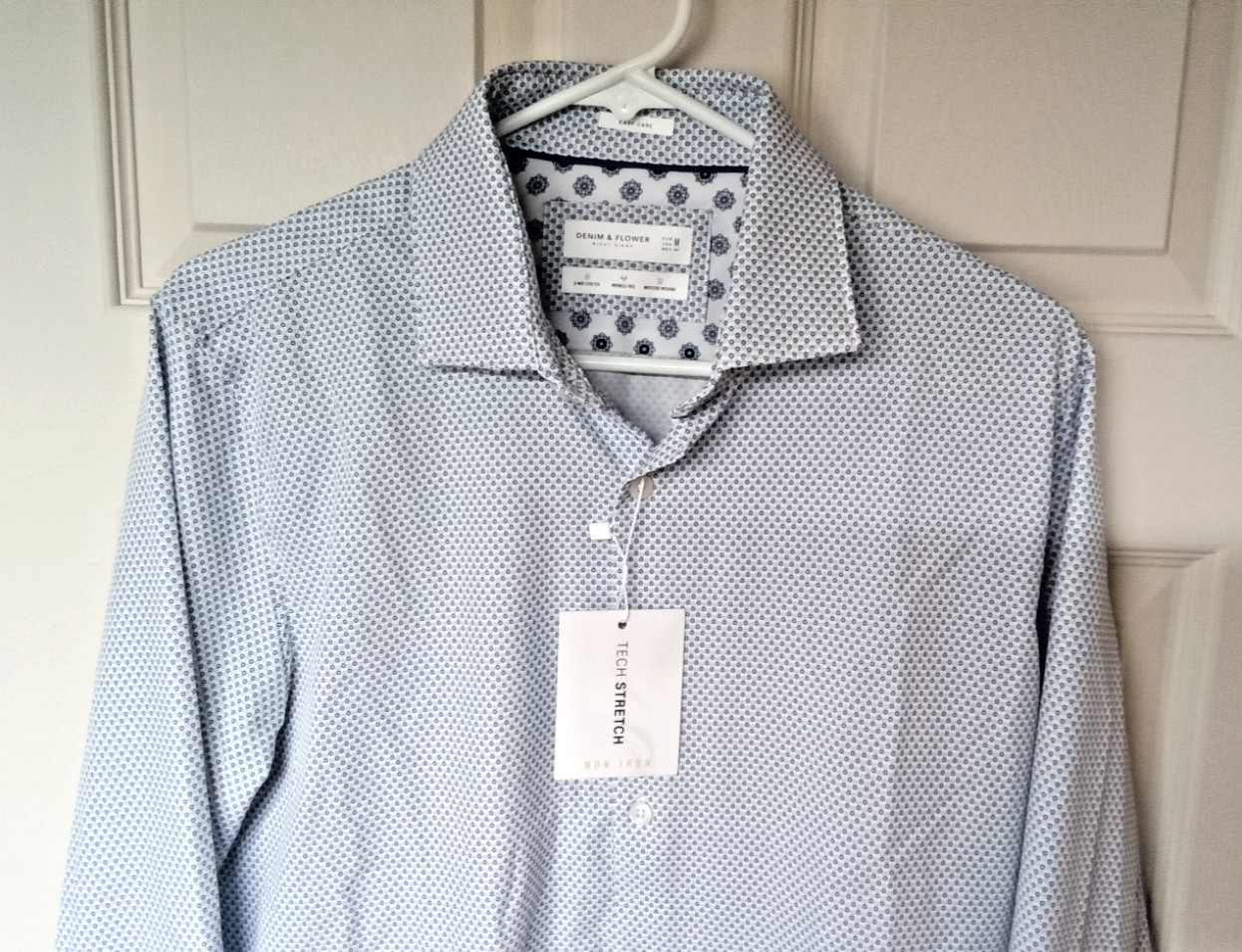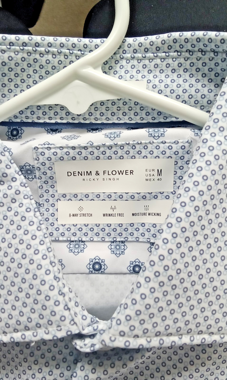 NWT Denim Flower Ricky Singh Blue/White Stretch Button Down Shirt Sz Medium