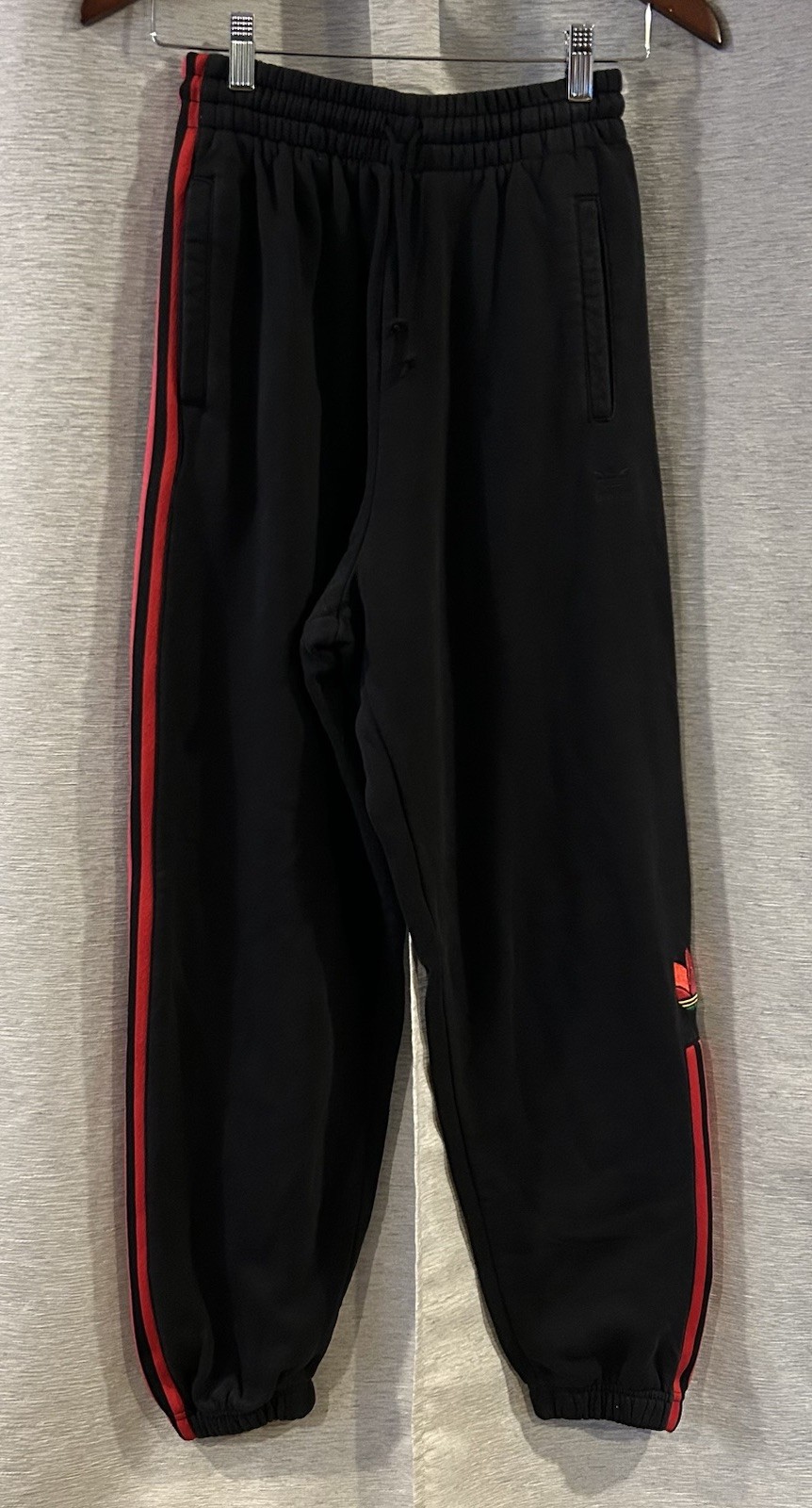 Adidas Women Pants XS Black Stripe Cotton Blend Drawstring Regular Fit Jogger