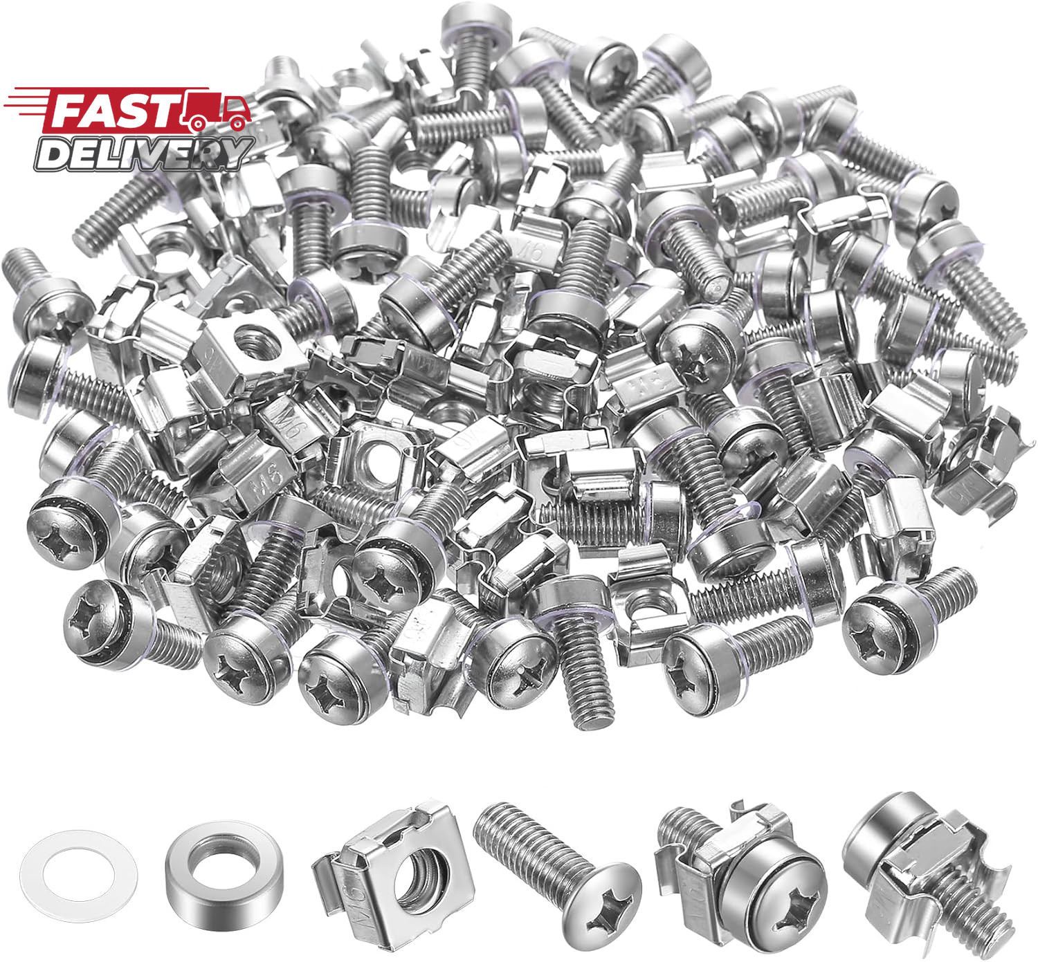 как выглядит 110 Pcs/55 Set Rack Mount Screws and Cage Nuts for Server Cabinet Cage Nuts Mo фото