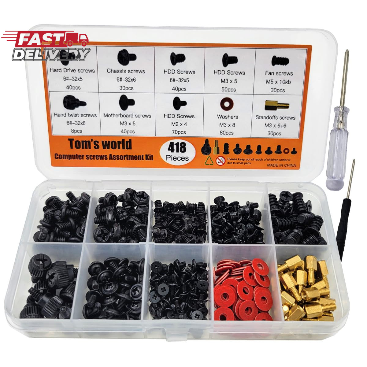 • 418Pieces Computer Screws Assortment Set Standoffs Screws for Motherboard, Hdd,S