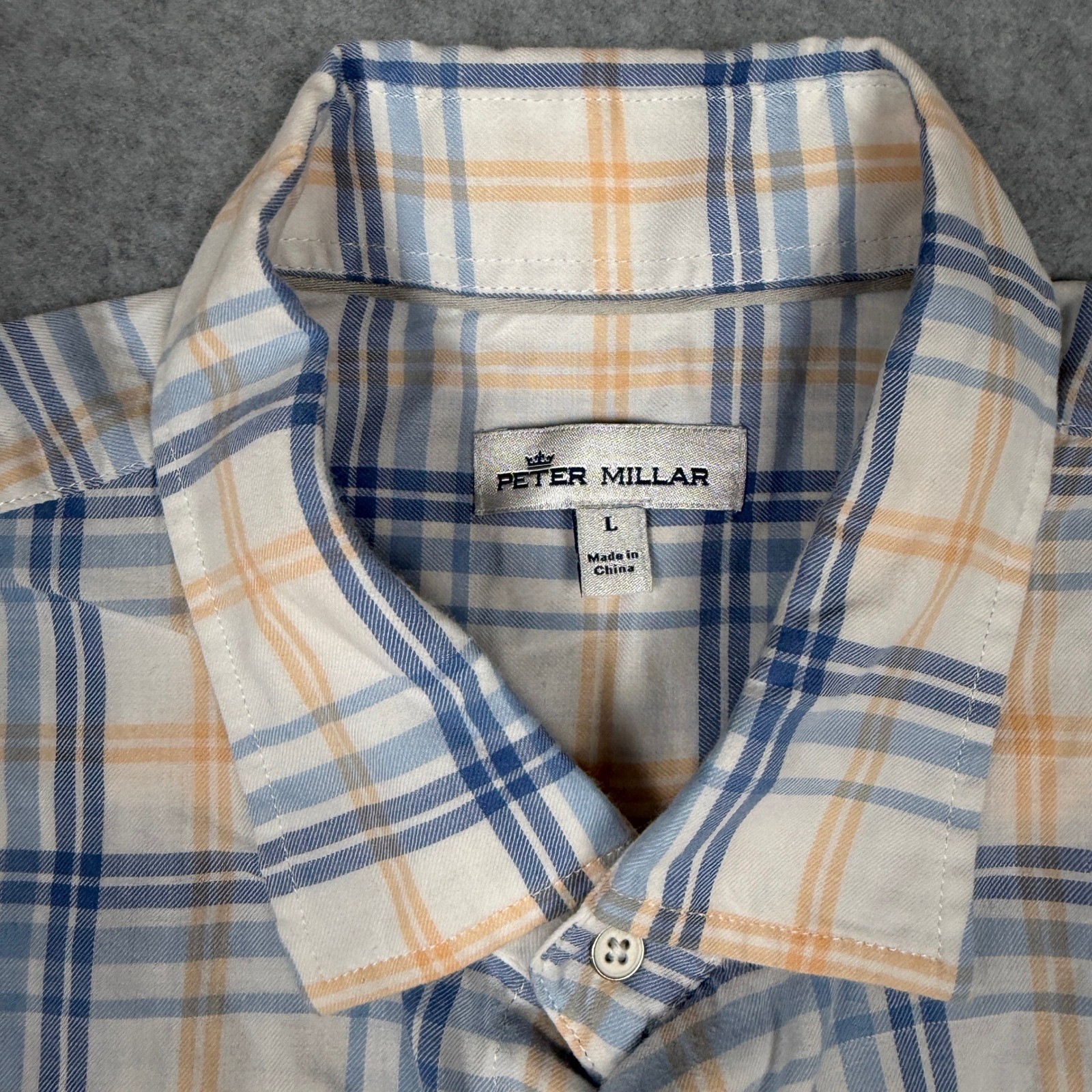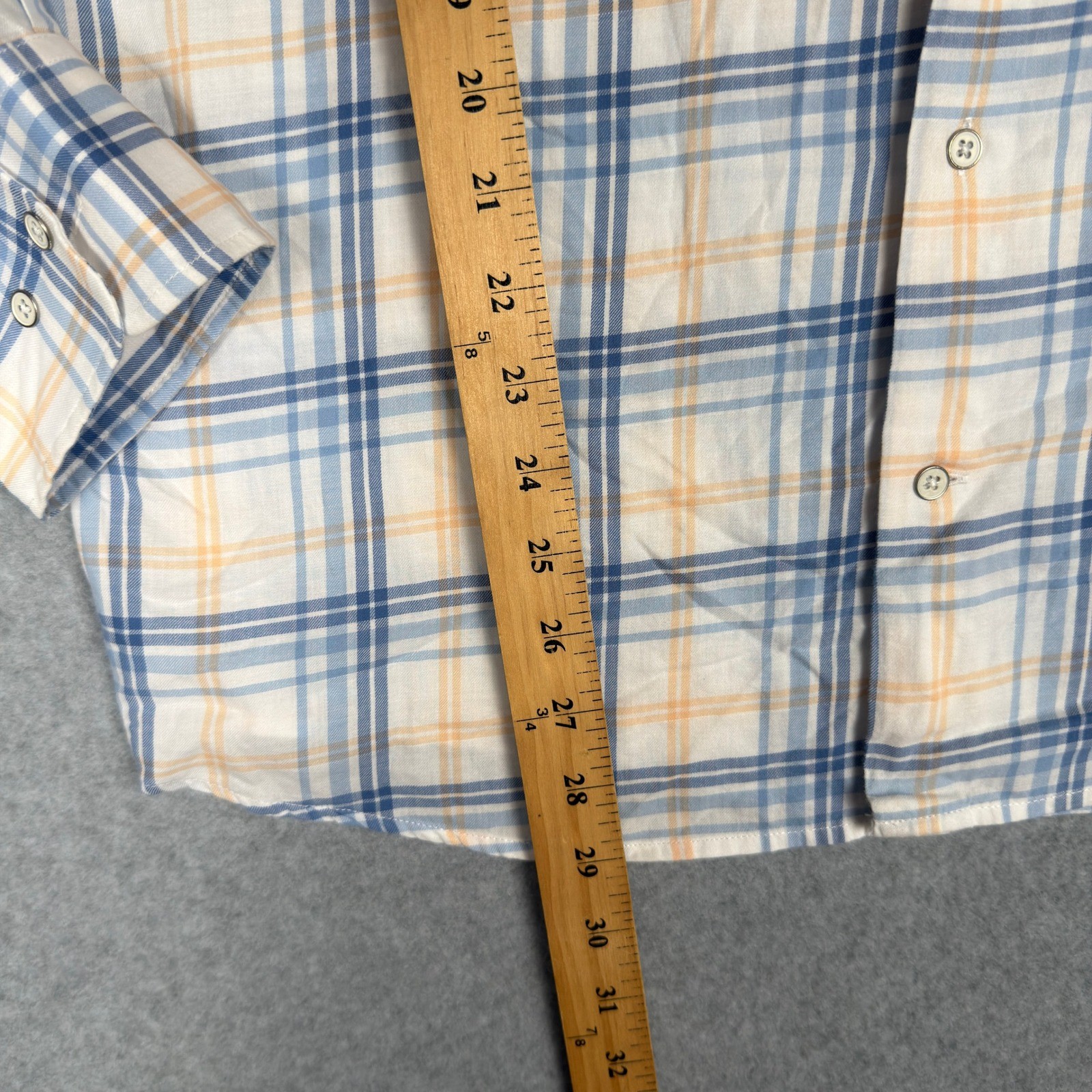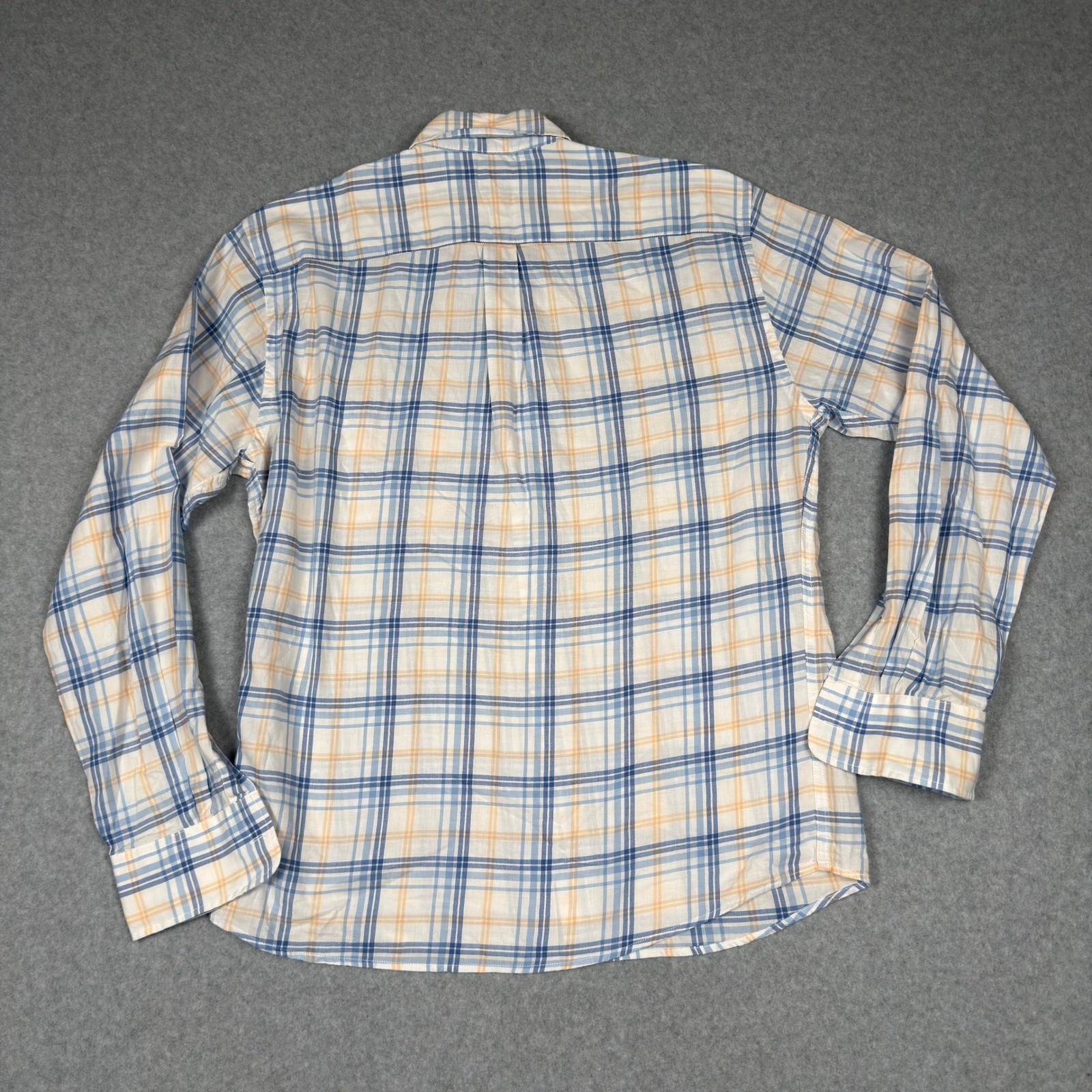Peter Millar Mens L Blue Orange Plaid Cotton Long Sleeve Button Down Shirt