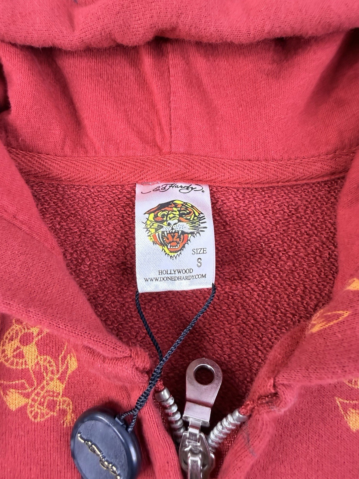 NWT Vintage Ed Hardy Skulls Tattoo Anchor Heart Hoodie Y2K Red Size Small