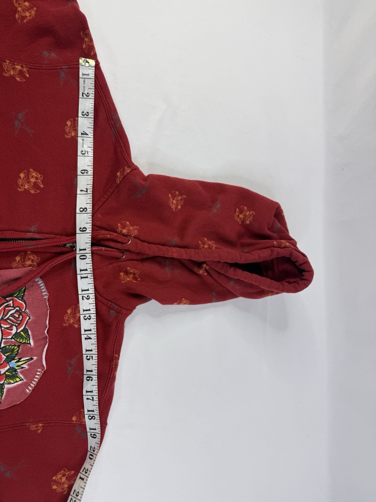 как выглядит NWT Vintage Ed Hardy Skulls Tattoo Anchor Heart Hoodie Y2K Red Size Small фото