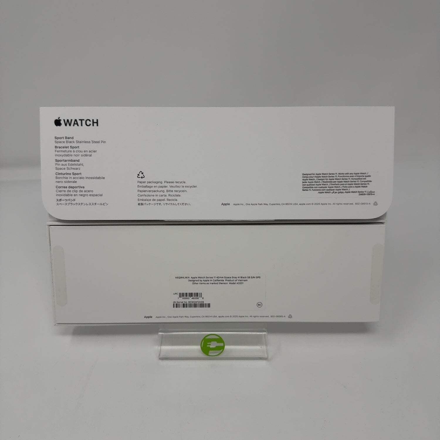 GPS Only Apple Watch Series 11 42MM Silver Aluminum Black Sport Band MEQW4LW/A