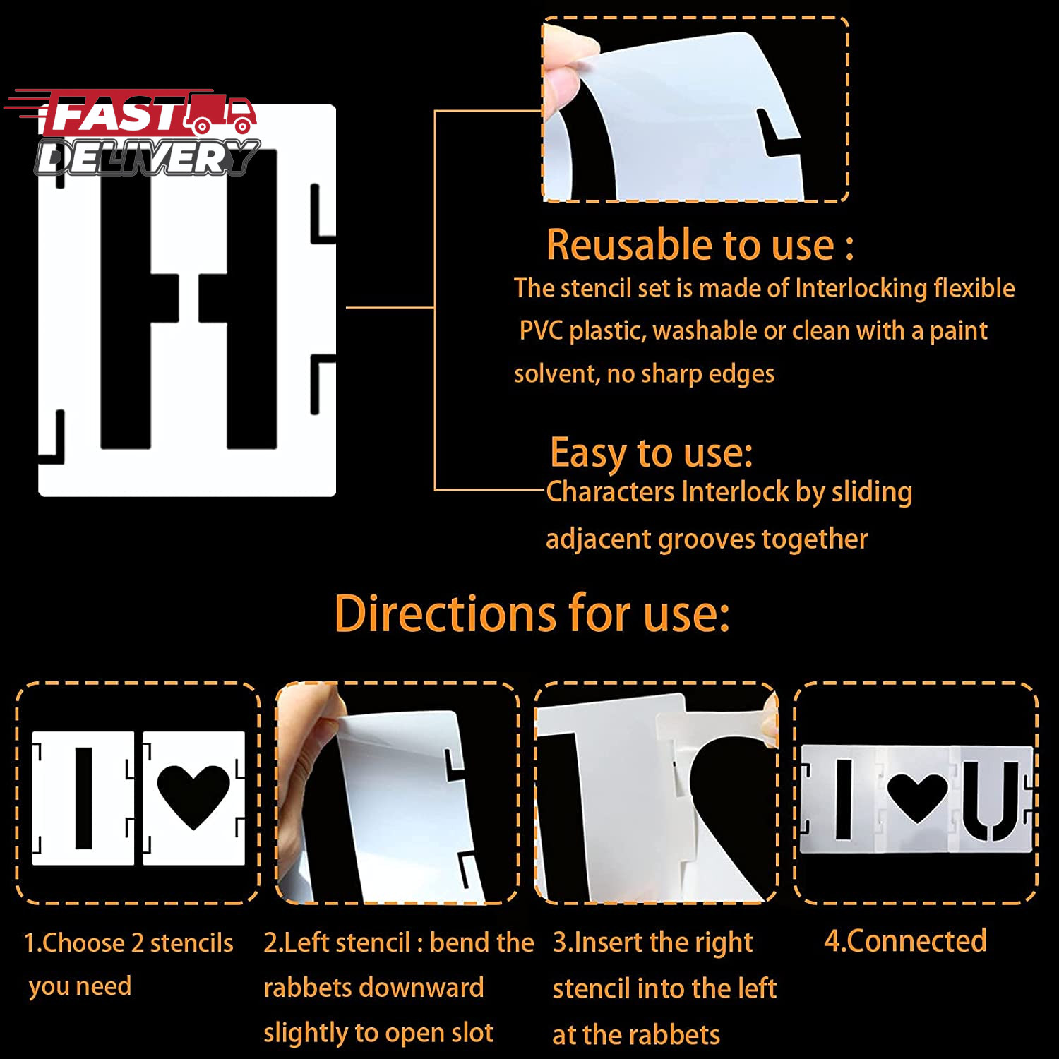 YEAJON 2 Inch Letter Stencils Symbol Numbers Craft Stencils, 42 Pcs Reusable Alp