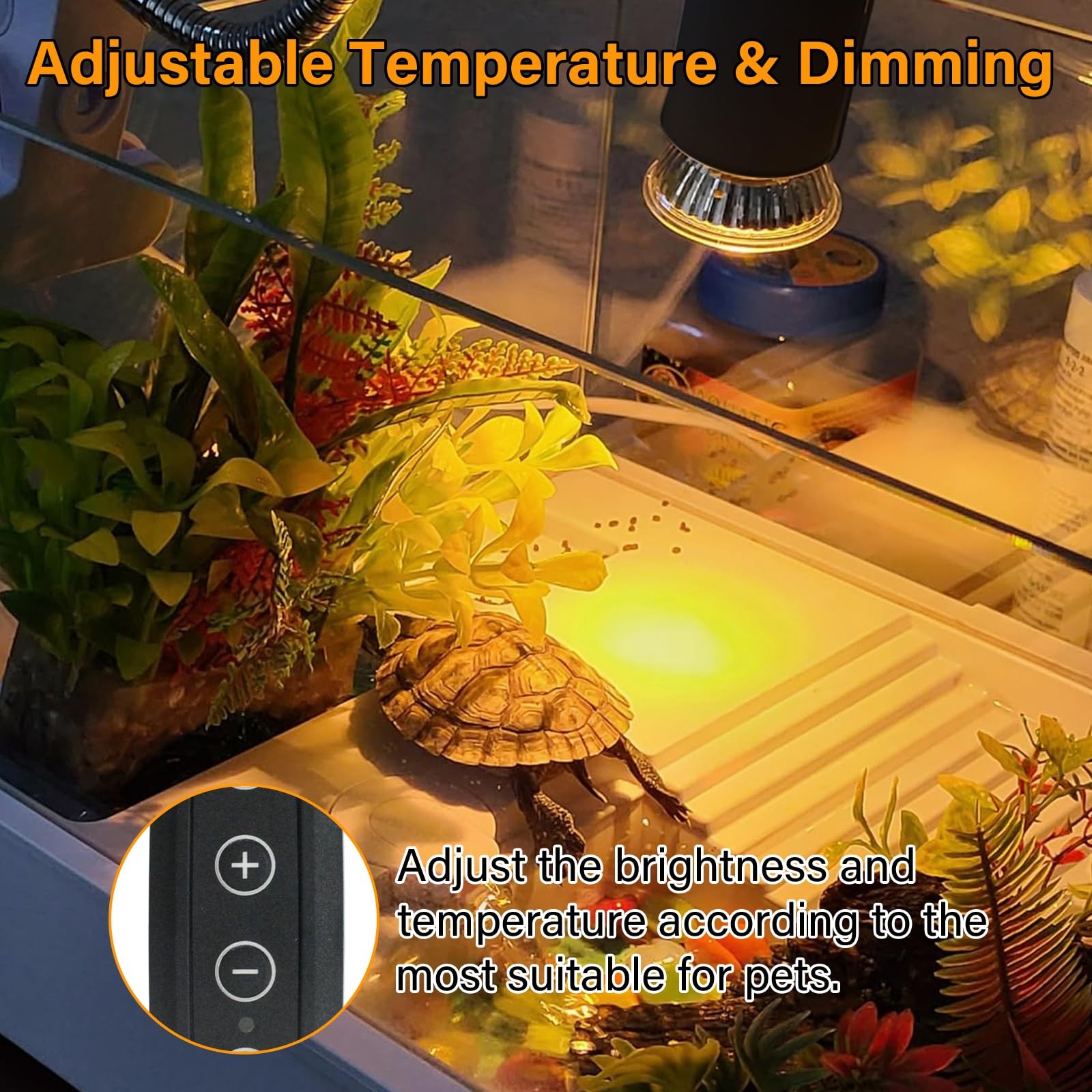 Reptile Heat Lamp with Clamp, Aquarium Lamp-Dimmable and Timer, warm