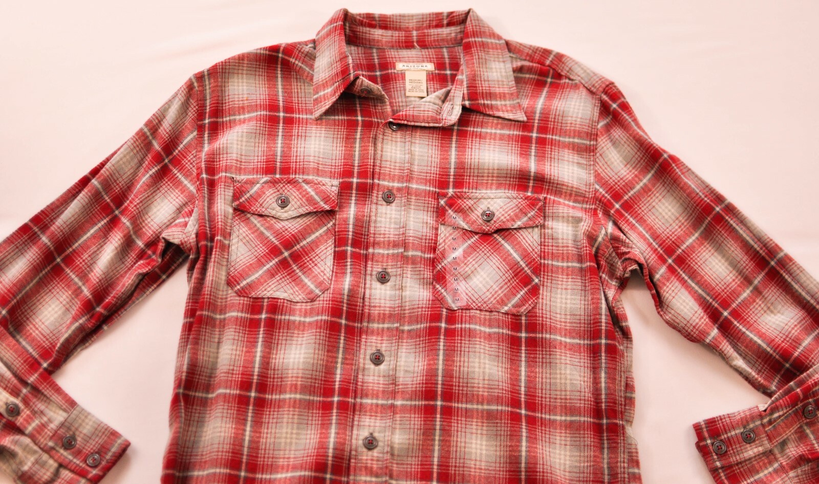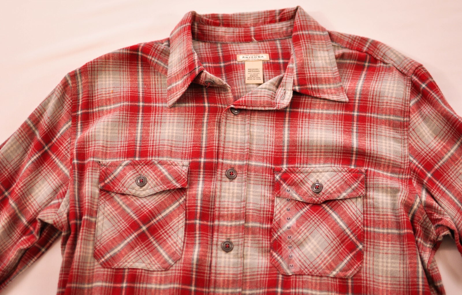 как выглядит mens Arizona size medium shirt long sleeve red button front cotton msrp 35 фото