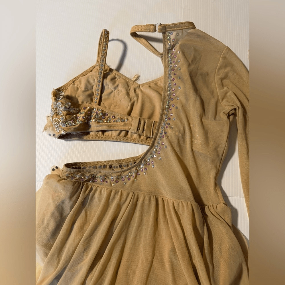 как выглядит Glamour solo dance costume tan pastel rhinestone 2 piece XLC-Extra large child фото