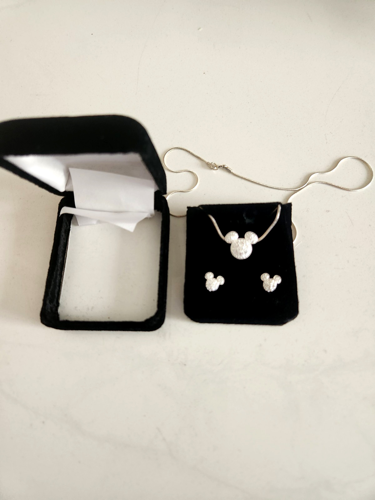 как выглядит Mickey Mouse Sterling Silver Crystal earrings and necklace set New 84243 фото