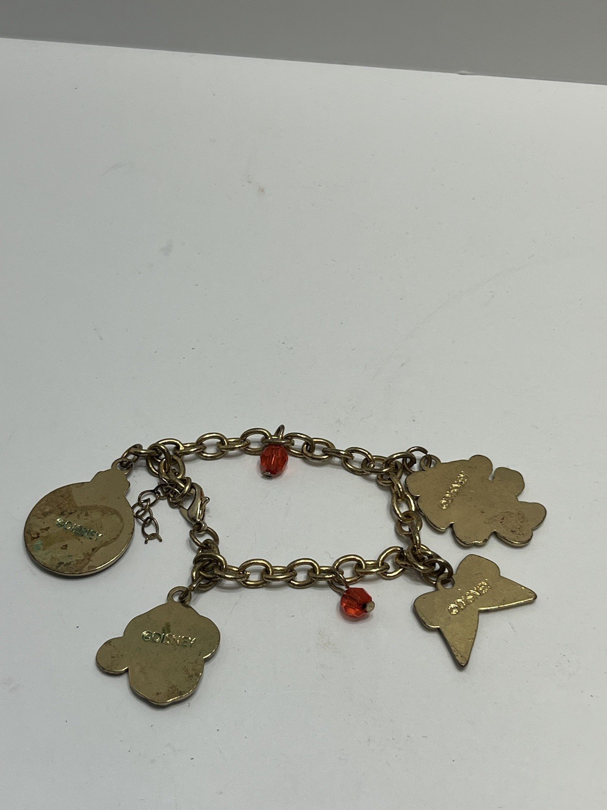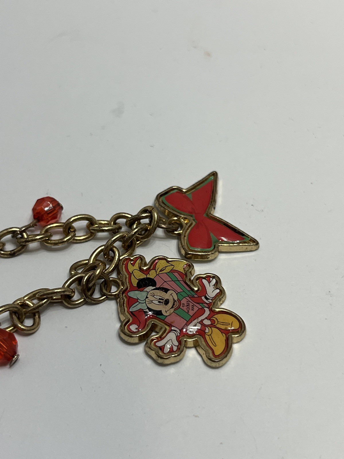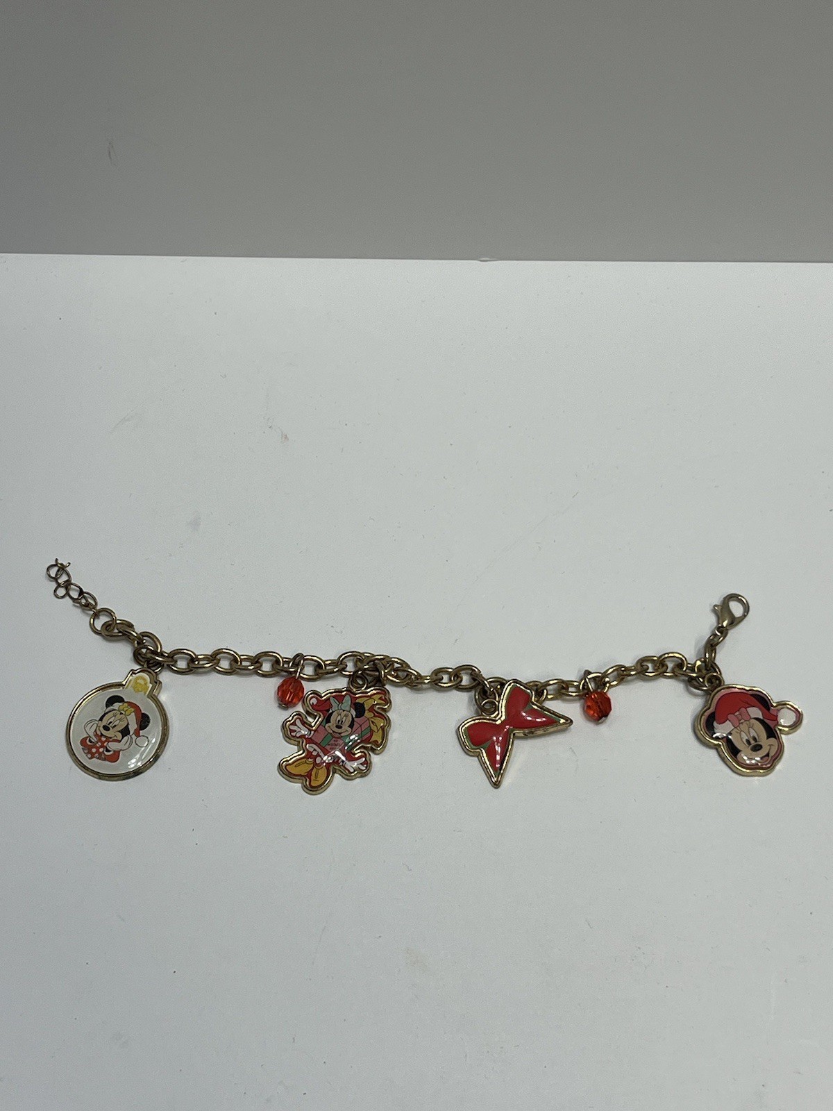как выглядит Minnie Mouse Gold Tone Charm Bracelet with Hearts and Bow Charms ETC READ фото
