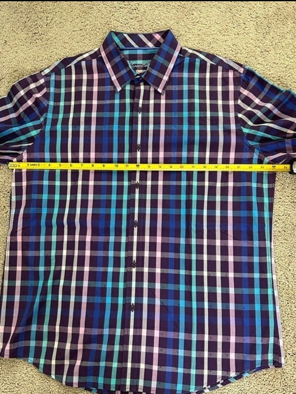 как выглядит Tasso Elba Mens Button Up Plaid Shirt Size L фото